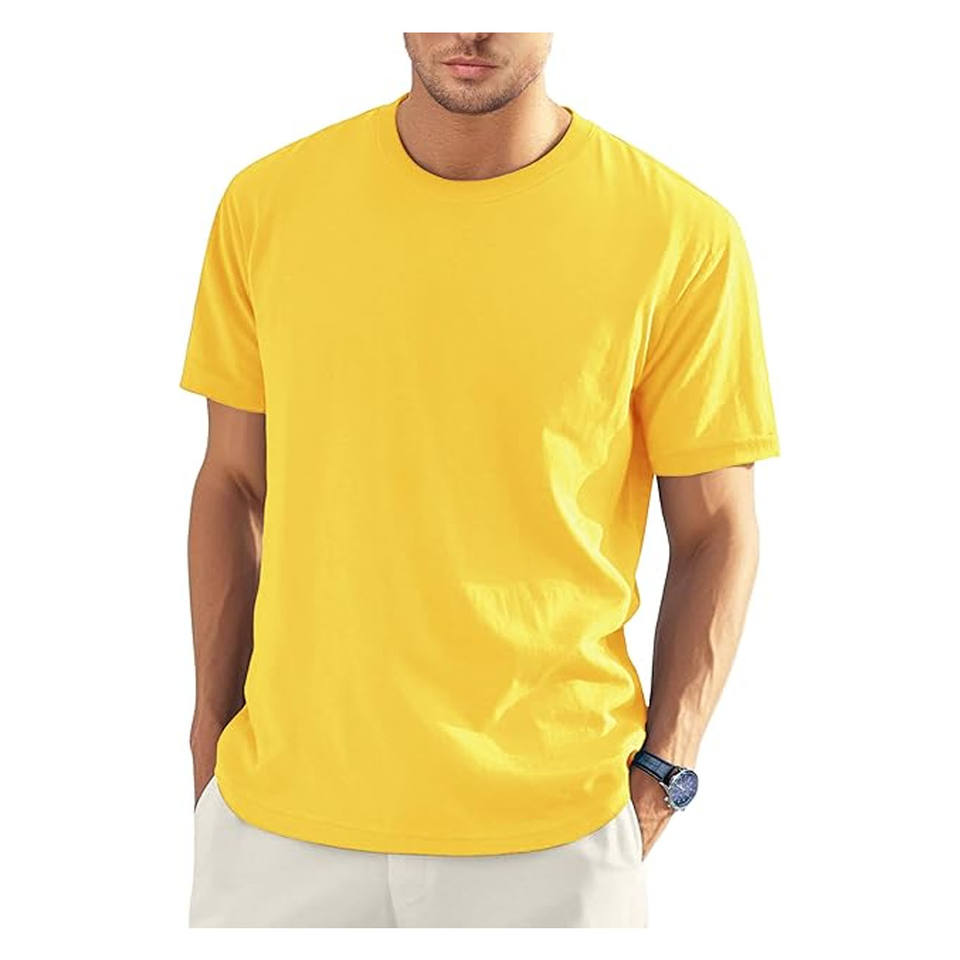 เสื้อยืดคอกลมแขนสั้นผู้ชาย ผ้าถักนิตติ้ง 100% ผ้าฝ้าย ระบายอากาศได้ดี เป็นมิตรกับสิ่งแวดล้อม ทรงปกติ รับสกรีนโลโก้และงานพิมพ์