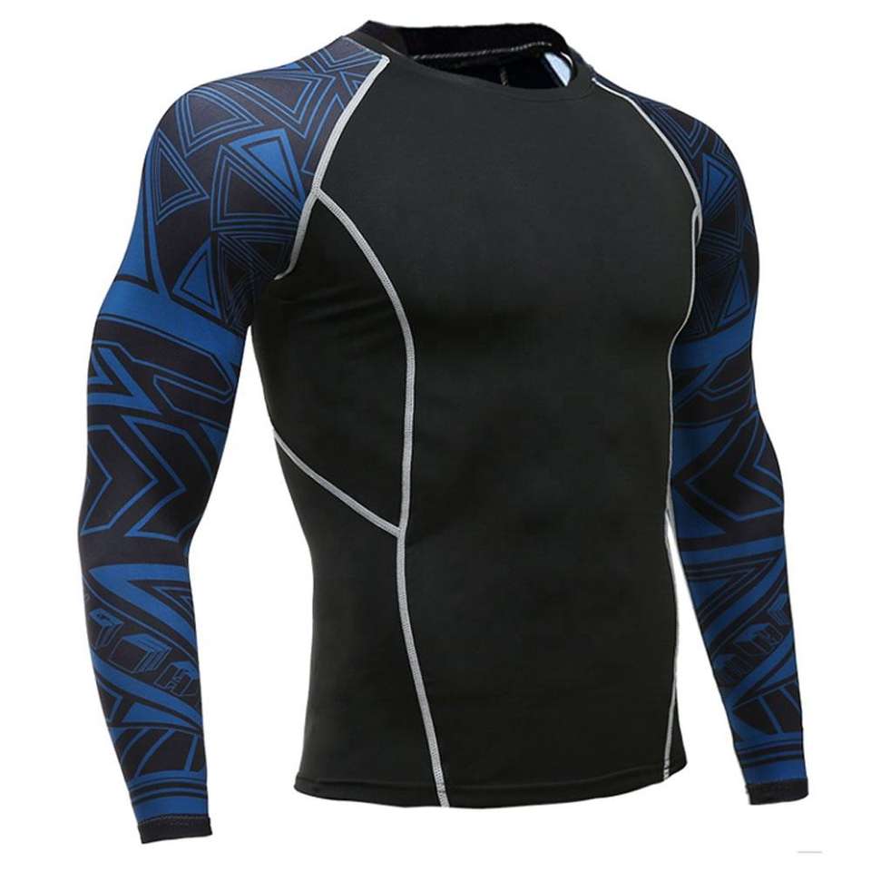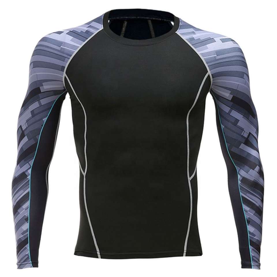 เสื้อป้องกันการผดผื่นสำหรับออกกำลังกายของผู้ชายเสื้อรัดรูปแบบแห้งเร็วพร้อมแขนยาวและทรงสลิมฟิต