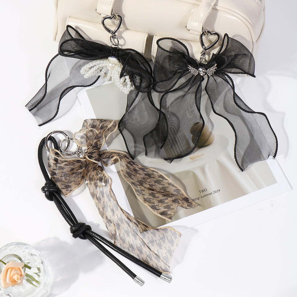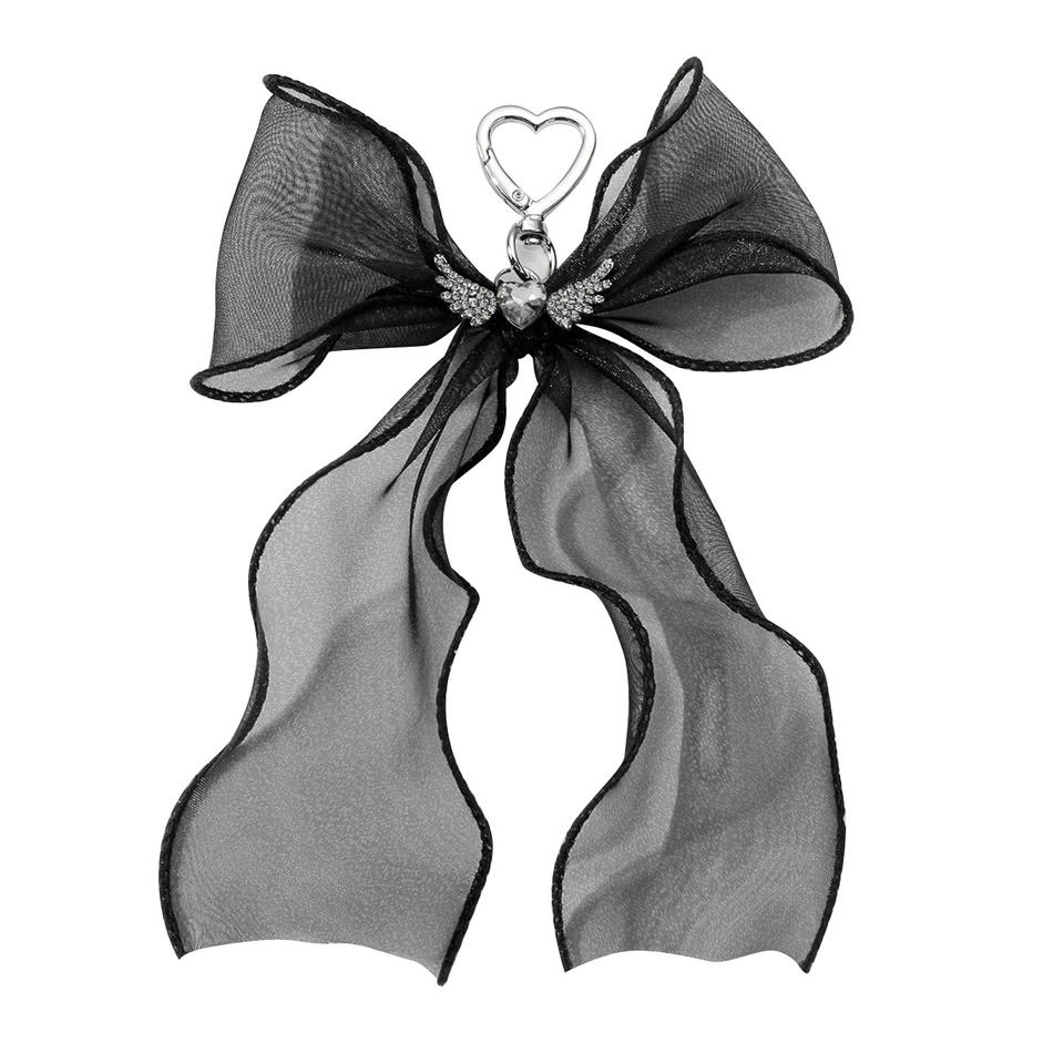 พวงกุญแจจี้กระเป๋าแบบตาข่ายประดับโบว์ผีเสื้อมุกและหัวใจสไตล์เกาหลียอดนิยมของ Mengda ทำด้วยมือ
