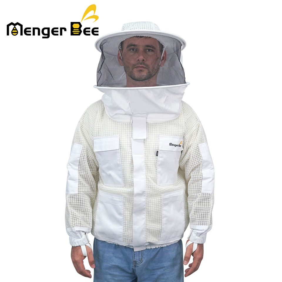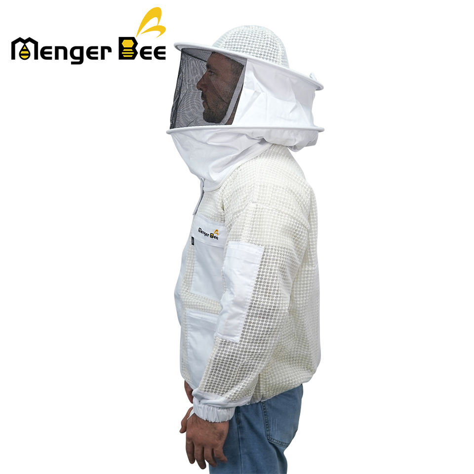 ชุดป้องกันผึ้งเมอร์เกอร์บีแบบสามชั้น ระบายอากาศได้ดี สีขาว ป้องกันผึ้งได้อย่างสมบูรณ์แบบ ผลิตจากผ้าโพลีเอสเตอร์ผสมฝ้าย เย็บสองชั้น กันน้ำสองชั้น