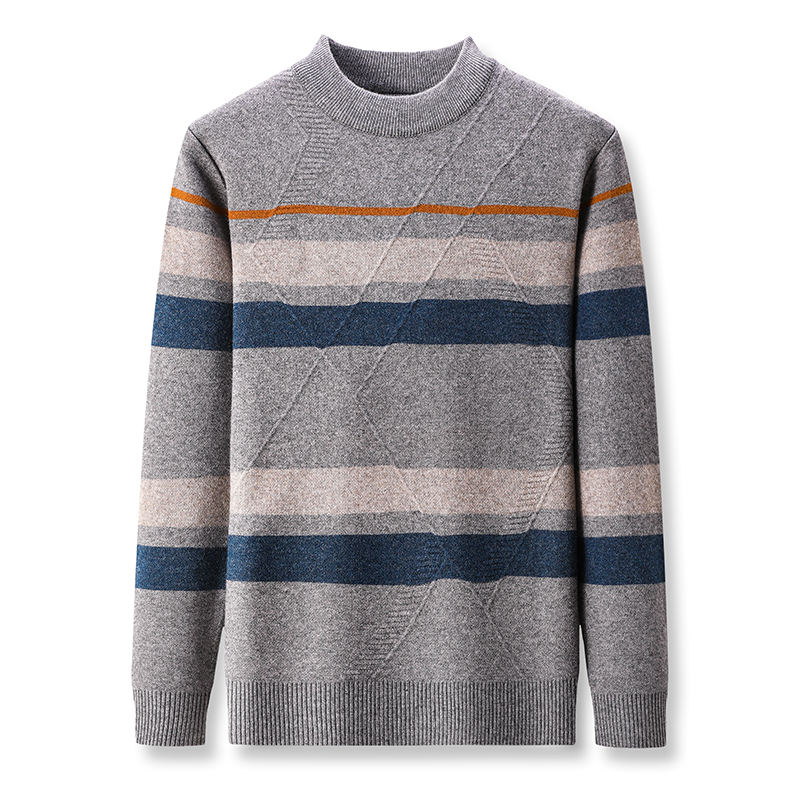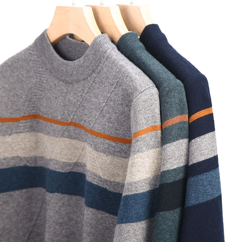 เสื้อสเวตเตอร์ถักแบบลำลองสำหรับบุรุษผ้าขน100% สีพื้นระบายอากาศคอกลมทรงสลิมฟิตสำหรับฤดูใบไม้ร่วง
