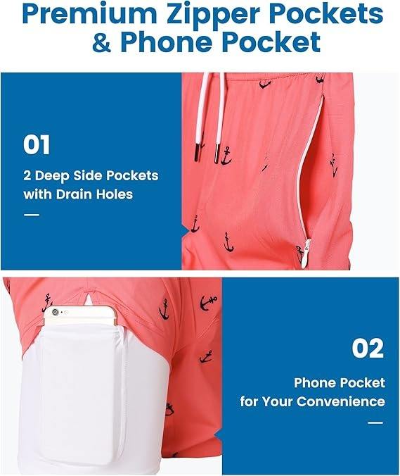 กางเกงว่ายน้ำขาสั้น2 In1เป็นมิตรกับสิ่งแวดล้อมสำหรับผู้ชายกางเกงผ้ายืดแบบแห้งเร็วพิมพ์ลายสมอเรือ4ฤดู
