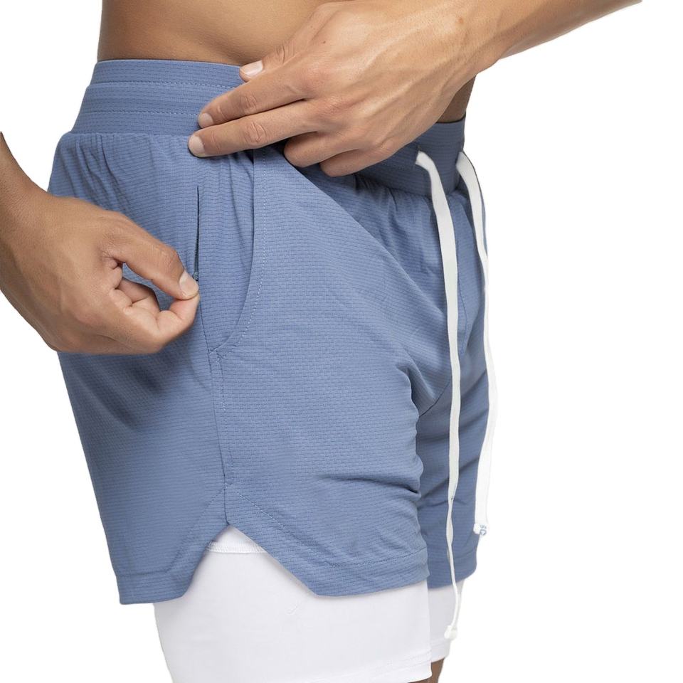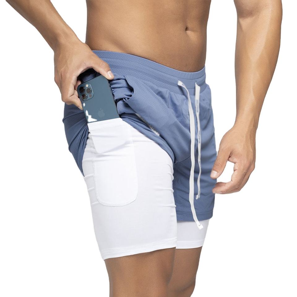 กางเกงขาสั้นผู้ชายเอวสูง2-in-1สำหรับออกกำลังกายในยิมกางเกง100% ผ้าฝ้ายลำลองปิดยืดหยุ่นระบายอากาศได้ดีแห้งเร็วสำหรับฝึกซ้อมฟิตเนสวิ่ง