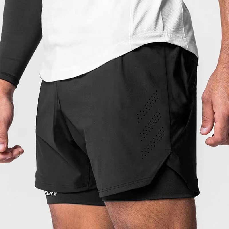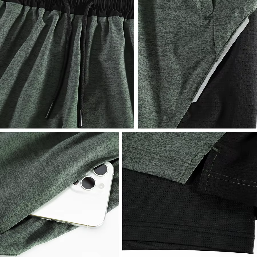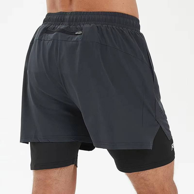 กางเกงวิ่งผู้ชายแบบ 2 in 1 พร้อมซับในแบบรัดรูป กางเกงออกกำลังกายสองชั้นสำหรับการฝึกซ้อมและฟิตเนส