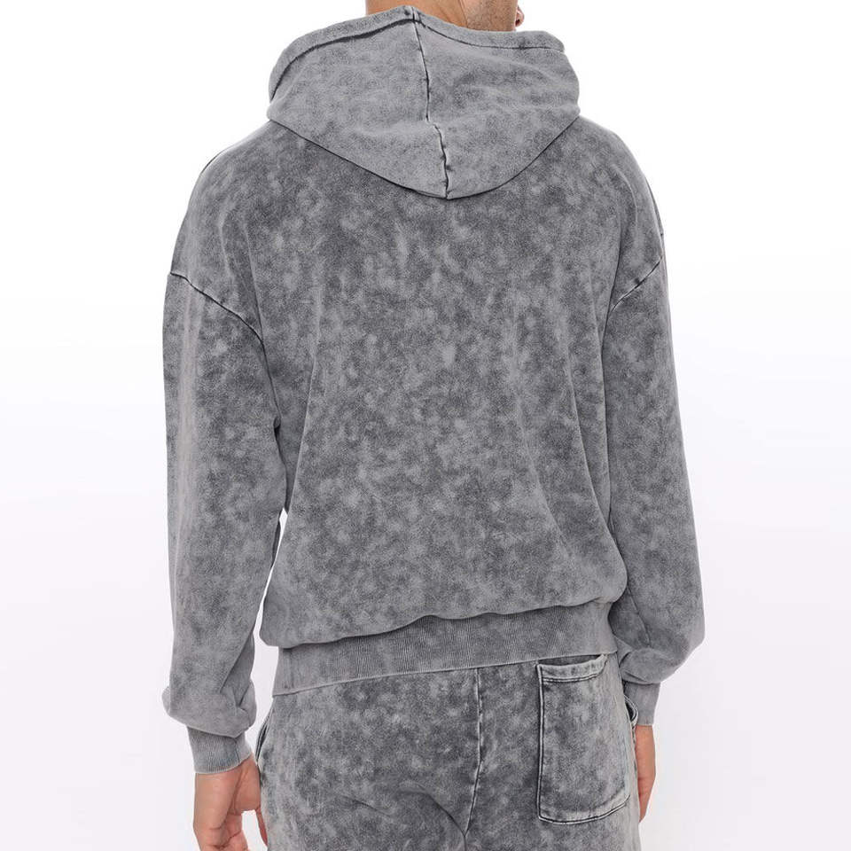 เสื้อฮู้ดดี้ผ้าฟลีซโพลีเอสเตอร์ระบายอากาศได้ดี ทรงปกติ สีสันแบบย้อมกรดตามสั่ง เป็นมิตรต่อสิ่งแวดล้อม พร้อมกางเกงจ็อกเกอร์ลำลองสำหรับผู้ชาย