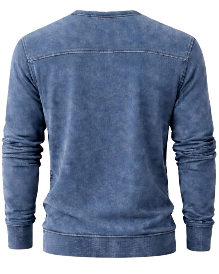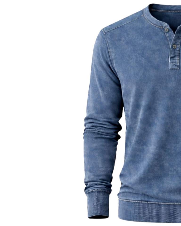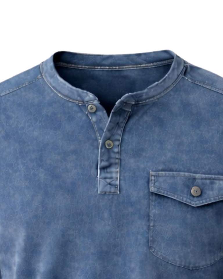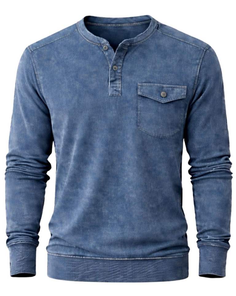 เสื้อสเวตเชิ้ตแขนยาวทรงเฮนลีย์ผ้าเดนิมสีน้ำเงินฟอกยีนส์สำหรับผู้ชาย สไตล์ลำลอง คอติดกระดุม มีกระเป๋า เหมาะสำหรับใส่ในฤดูหนาว ผ้าฝ้ายทรงเข้ารูป