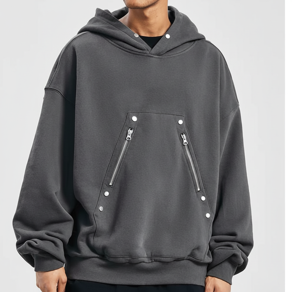 เสื้อสเวตเตอร์ผู้ชายซักกรดเสื้อสเวตเชิ้ตลำลองแนวสตรีทมีซิปรูดซิปมีฮู้ดสำหรับผู้ชาย2025