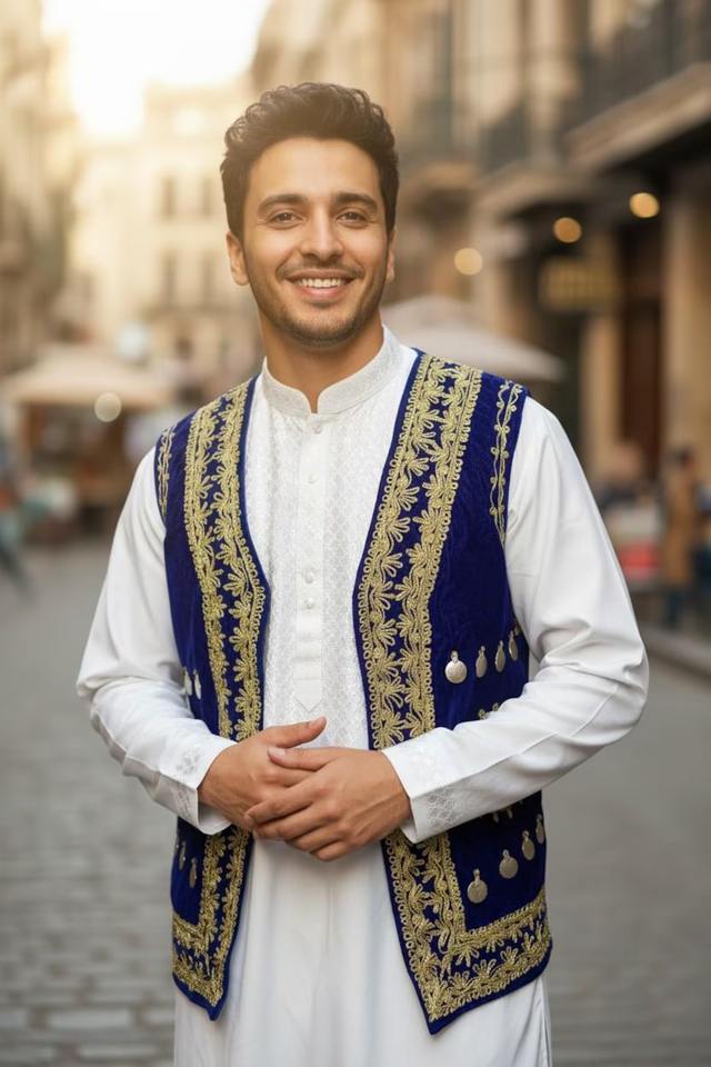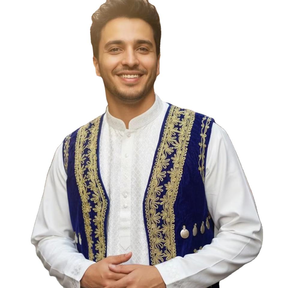 เสื้อกั๊กผู้ชายแบบไม่มีแขน งานฝีมือแบบดั้งเดิมของชาวอัฟกัน สำหรับฤดูร้อน ผลิตจากโพลีเอสเตอร์/ผ้าฝ้าย เหมาะสำหรับงานแต่งงาน งานเทศกาล และงานพิเศษ