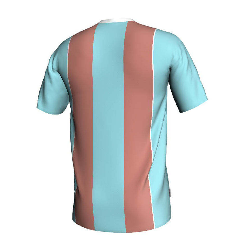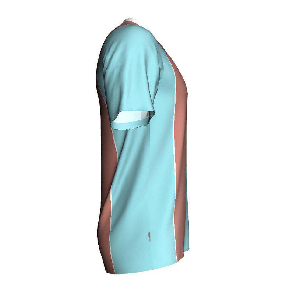 เสื้อยืดกีฬาคอวีลายทางแนวตั้งสีพีชสำหรับผู้ชาย เสื้อเจอร์ซีย์ฝึกซ้อมกีฬา