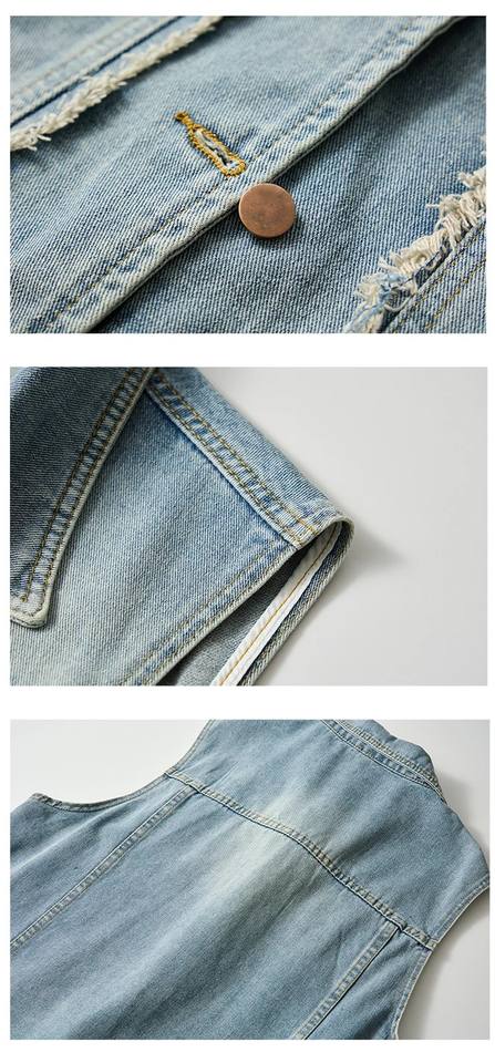 เสื้อกั๊กยีนส์ผู้ชายสไตล์เรโทรสำหรับฤดูใบไม้ร่วง แนวสตรีทแวร์ ระบายอากาศได้ดี กระดุมแถวเดียว สวมใส่สบายๆ