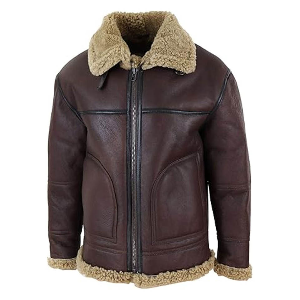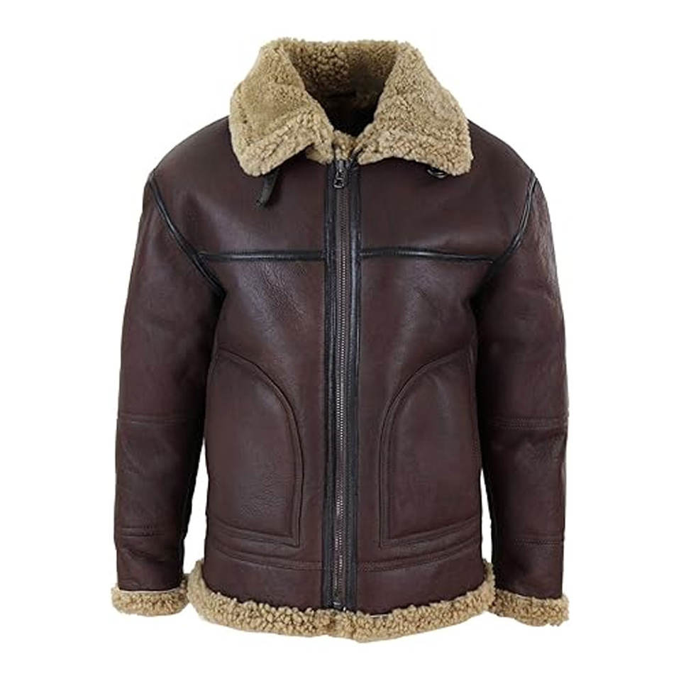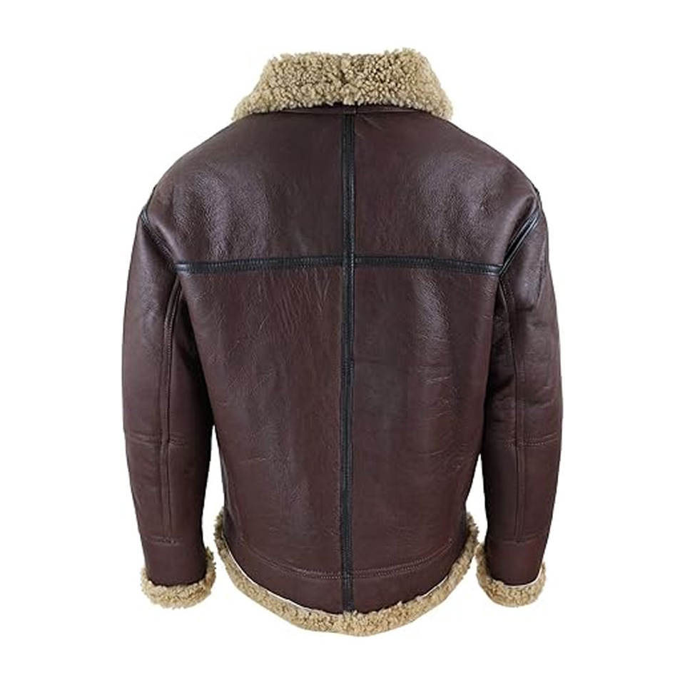 เสื้อแจ็คเก็ตนักบินหนังแกะแท้สำหรับผู้ชาย แจ็คเก็ตบอมเบอร์หนังวินเทจสำหรับฤดูหนาว คอปกขนสัตว์ อุ่น ทนทาน เสื้อคลุมสำหรับผู้ชาย