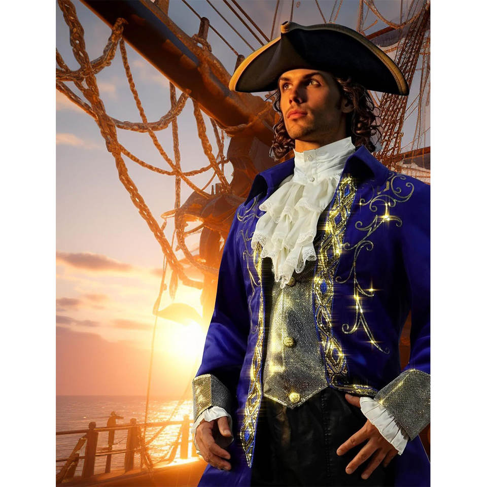 เสื้อแจ็คเก็ตสตีมพังก์สีน้ำเงินสำหรับผู้ชาย สไตล์ยุคกลาง กอธิค วิคตอเรียน ขายดี รับผลิตแบบ OEM ODM