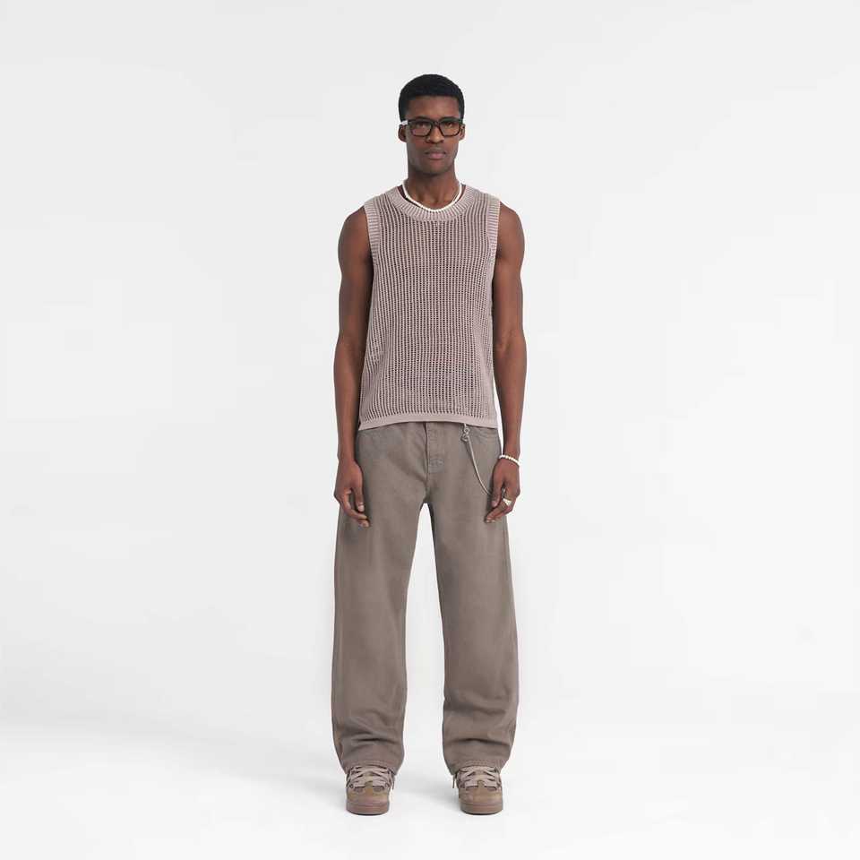 กางเกงยีนส์ทรงแบ็กกี้สำหรับผู้ชายทันสมัยใส่ได้ทุกวันขาของแคชเมียร์สีน้ำตาลทนทานใส่สบายปักกระดุมแข็ง