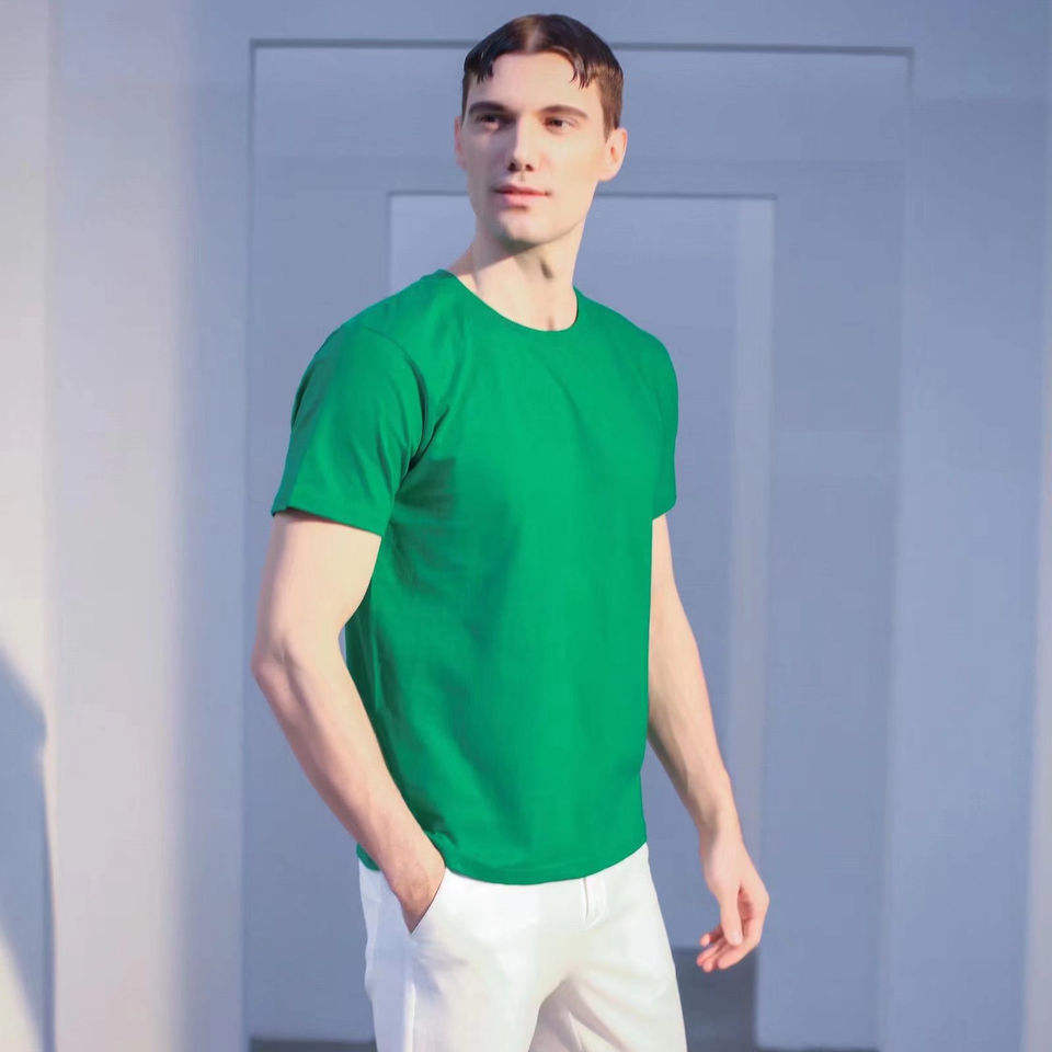 เสื้อยืดแขนสั้นผู้ชาย คอกลม ลำลอง ใส่สบายสำหรับฤดูร้อน สีเขียวมะนาวเขียวขี้ม้า ผ้าฝ้ายเนื้อนุ่ม ทรงปกติ