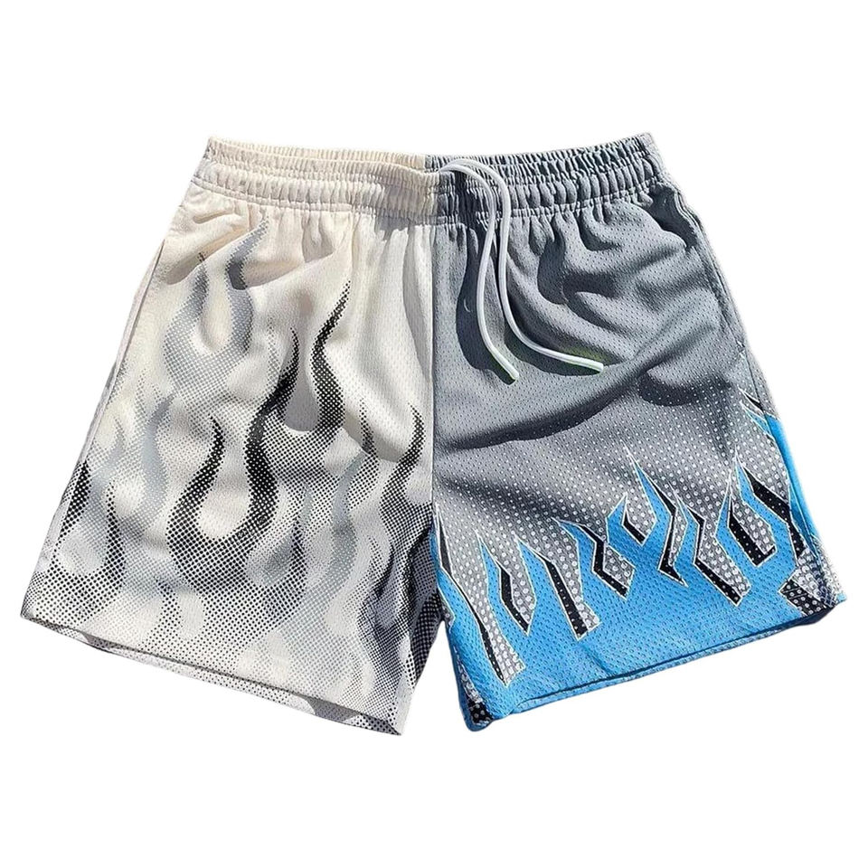 กางเกงขาสั้นบาสเก็ตบอลสำหรับผู้ชายกางเกงขาสั้นวิ่งออกกำลังกายลำลองกางเกงกีฬาผ้าตาข่ายพิมพ์ลายกราฟิก