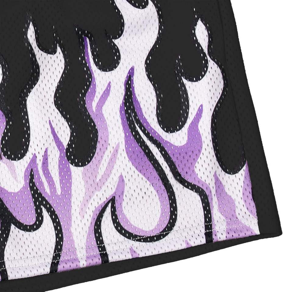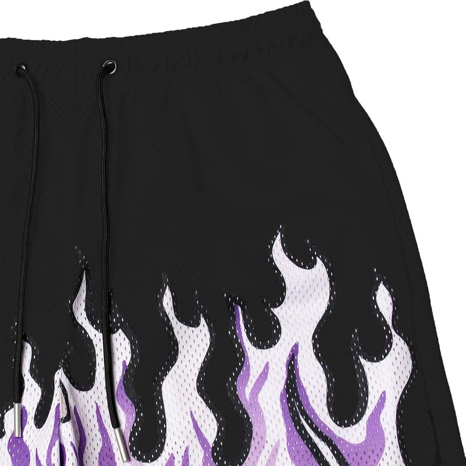กางเกงบาสเก็ตบอลชายลำลองสำหรับออกกำลังกาย ผ้าตาข่าย แต่งเชือกผูก โพลีเอสเตอร์ 100% ลายพิมพ์กราฟิกเปลวไฟ สำหรับวิ่ง