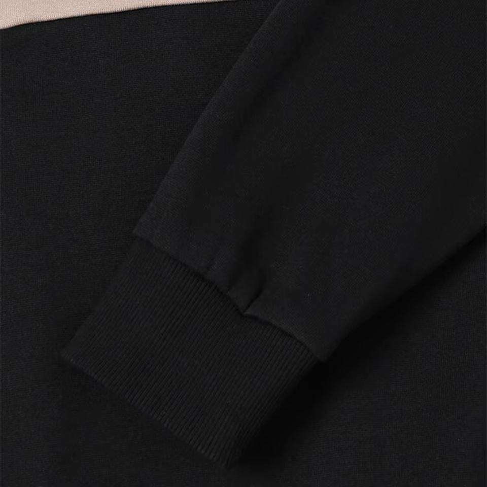 เสื้อฮู้ดบล็อกสีเบจ-ดำสำหรับผู้ชาย เสื้อสเวตเชิ้ตผ้าฟลีซลำลอง สไตล์สตรีทแวร์สำหรับฤดูหนาว