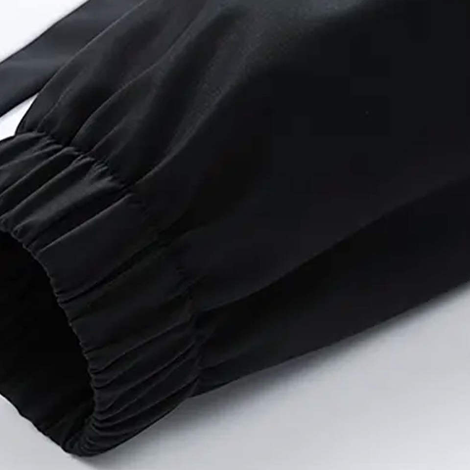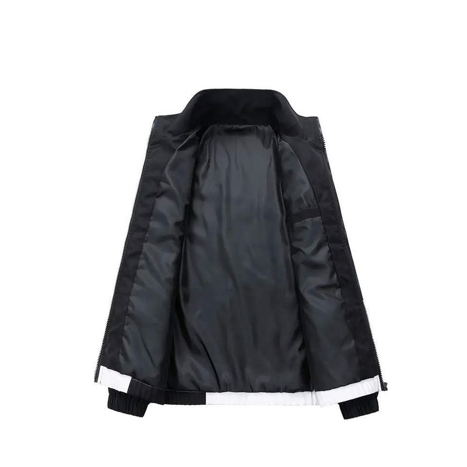 ชุดวอร์มผู้ชาย สีดำ น้ำเงิน ขาว เสื้อแจ็คเก็ตซิปเต็มตัว กางเกงจ็อกเกอร์ทรงเข้ารูป ชุดออกกำลังกาย ชุดกีฬา ชุดสั่งทำพิเศษ เป็นมิตรกับสิ่งแวดล้อม