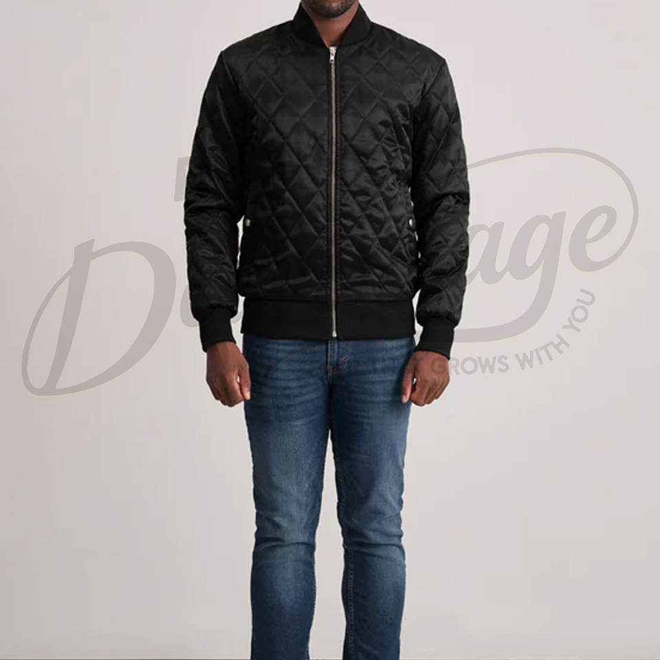 Mens Black Diamond Quilted Bomber Jacket Slim Fit Zip Up Padded Outerwear Lightweight Warm Casual Fashion Sportswear
