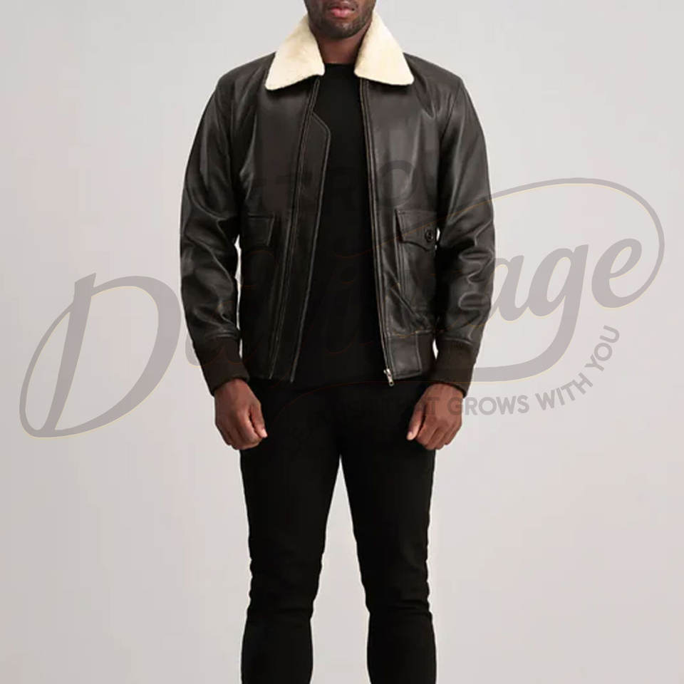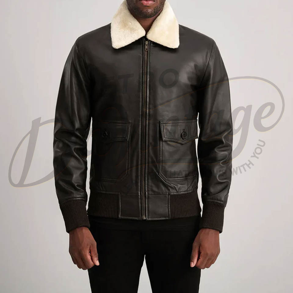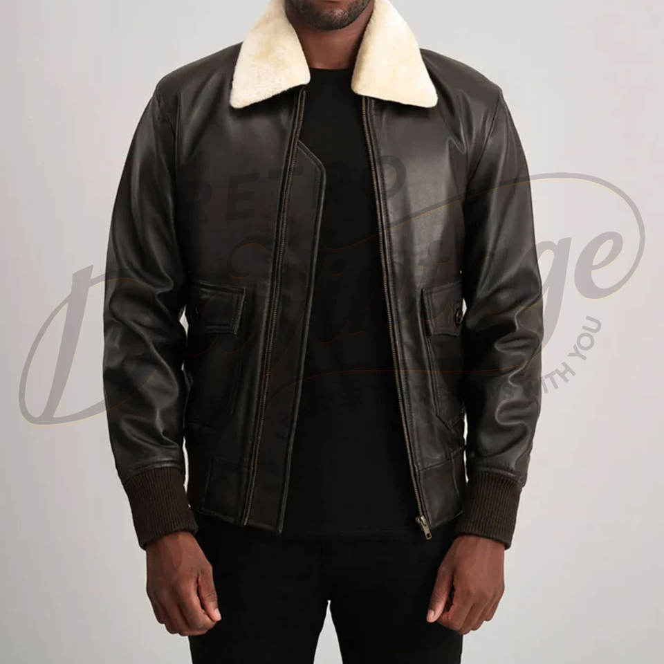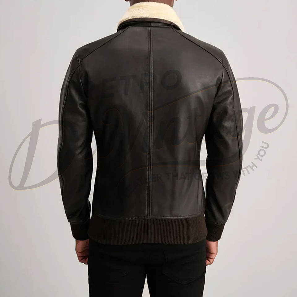เสื้อแจ็คเก็ตนักบินหนังแท้สีดำสำหรับผู้ชาย บุขนแกะสีครีม อุ่นสบายสำหรับฤดูหนาว เสื้อโค้ทสไตล์ไบค์เกอร์ เสื้อคลุมสำหรับใส่ด้านนอก