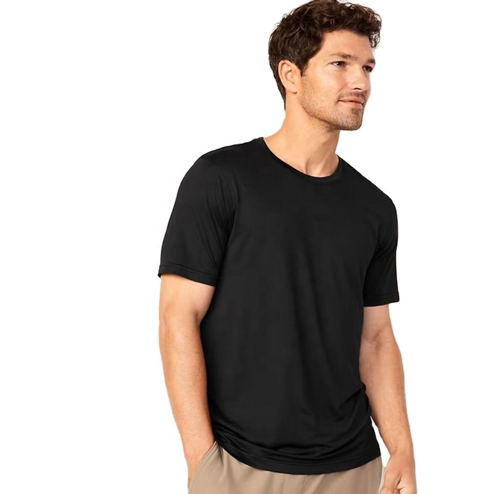 เสื้อยืดผู้ชายผ้าโพลีเอสเตอร์สีดำแห้งเร็วเสื้อลำลองคอกลมสำหรับบุรุษ