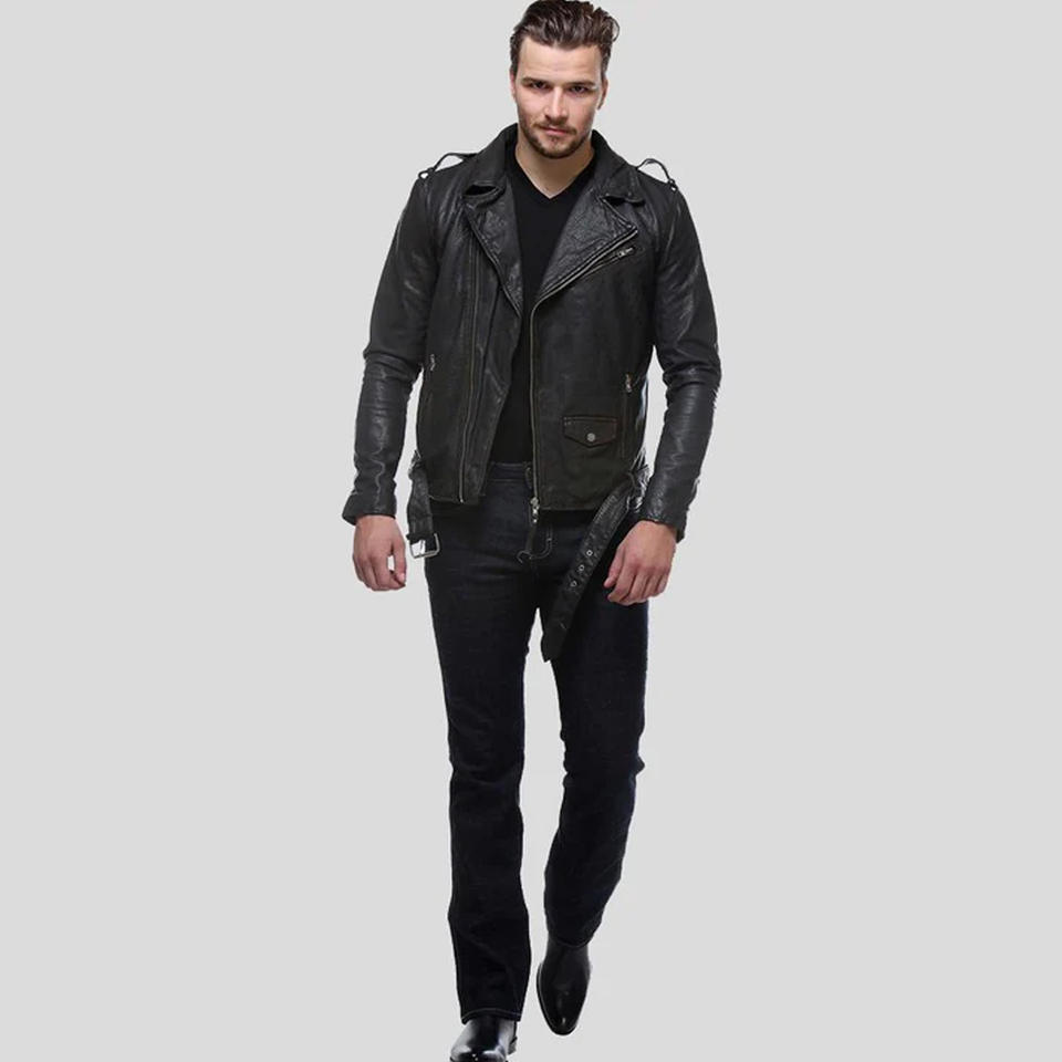 เสื้อแจ็กเก็ตหนังไบเกอร์ผู้ชาย