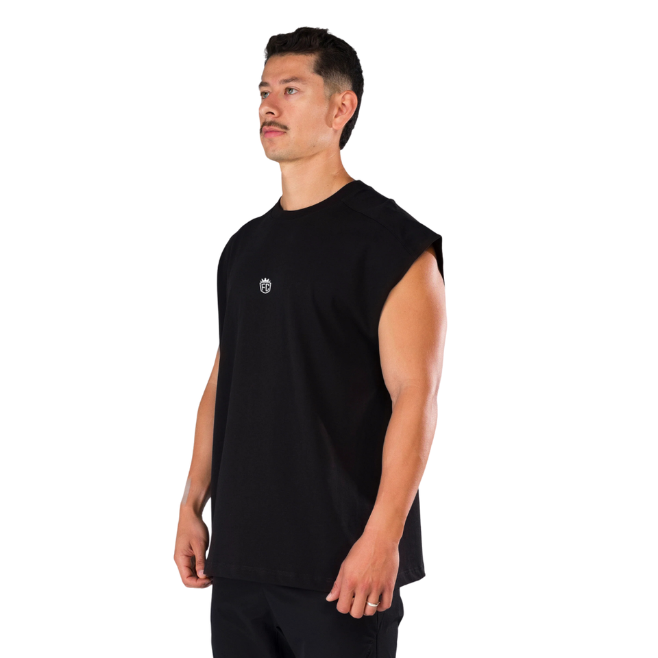 เสื้อกล้ามผู้ชายสีดำแบบไม่มีแขน ทรงโอเวอร์ไซส์ สำหรับออกกำลังกาย เล่นเวท ฟิตเนส สตรีทแวร์ รับผลิตแบบ OEM จำนวนมาก