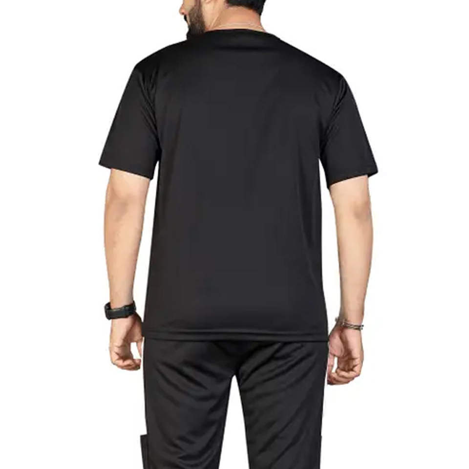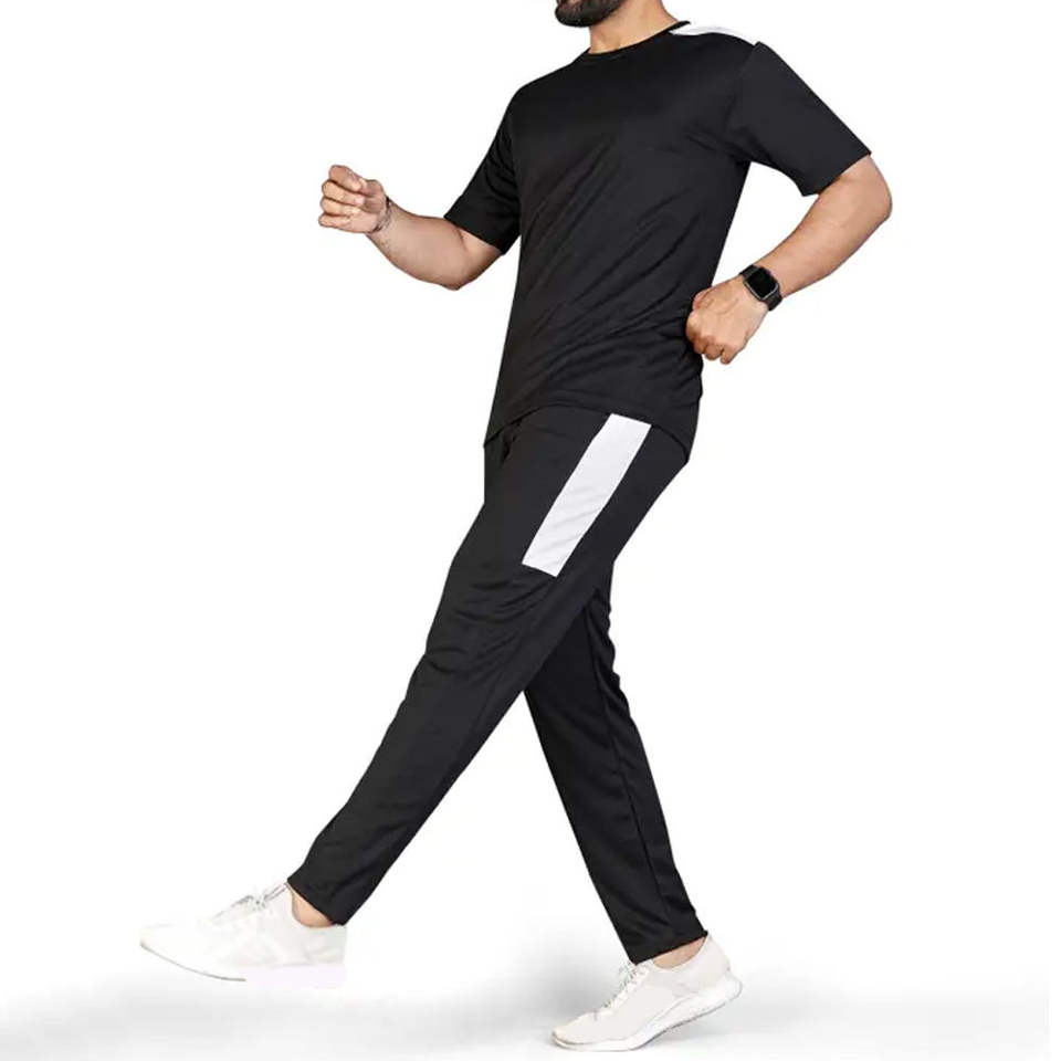 ชุดวอร์มกีฬาผู้ชายสีดำทรงเข้ารูป ระบายอากาศได้ดี เป็นมิตรกับสิ่งแวดล้อม ผลิตจากโพลีเอสเตอร์ 100% เหมาะสำหรับการฝึกซ้อม วิ่งจ๊อกกิ้ง ออกกำลังกาย ฟิตเนส และกิจกรรมกีฬาต่างๆ