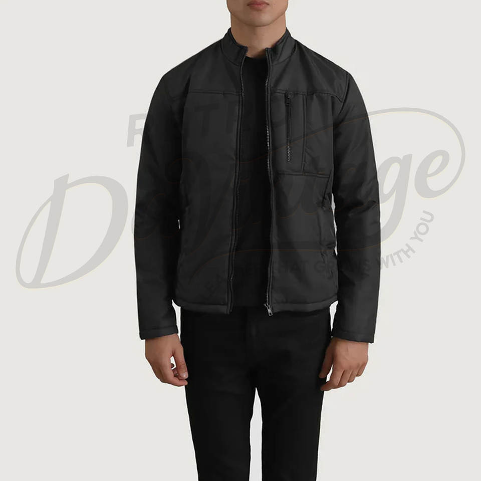 เสื้อแจ็คเก็ตบุหนาบุนวมสีดำสำหรับผู้ชาย คอตั้ง ทรงเข้ารูป อุ่นสบาย กันลม น้ำหนักเบา เหมาะสำหรับฤดูหนาว
