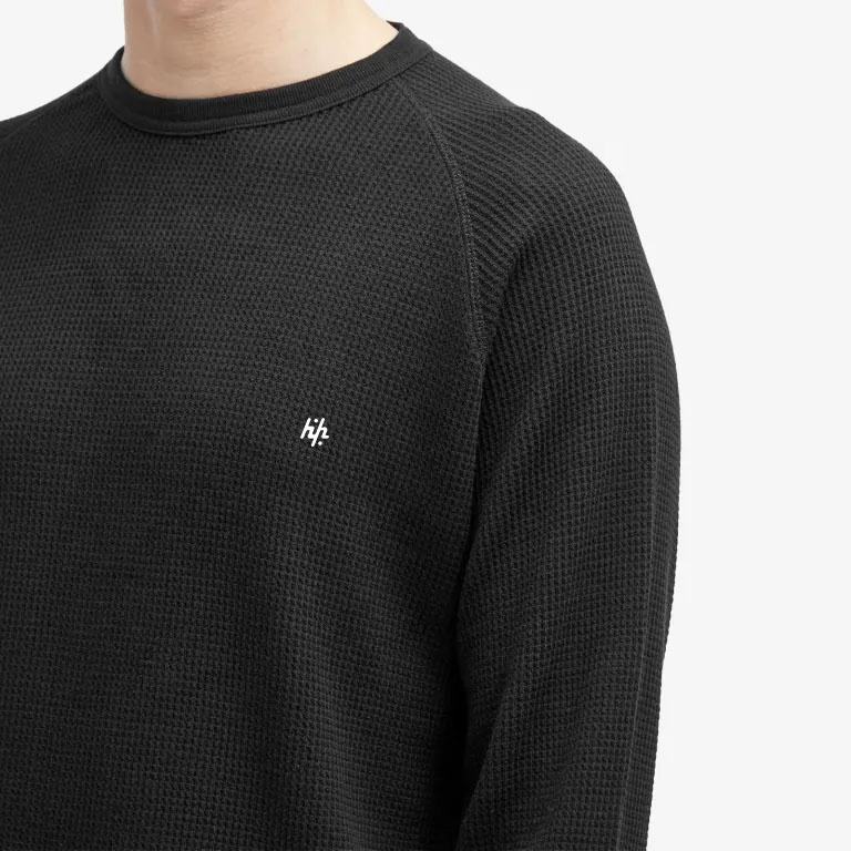 เสื้อสเวตเตอร์บุรุษสีดำพร้อมวาฟเฟิลเก็บความร้อนทรงทันสมัยคุณสมบัติป้องกันการหดตัวแฟชั่นสวมใส่สบายและมีสไตล์
