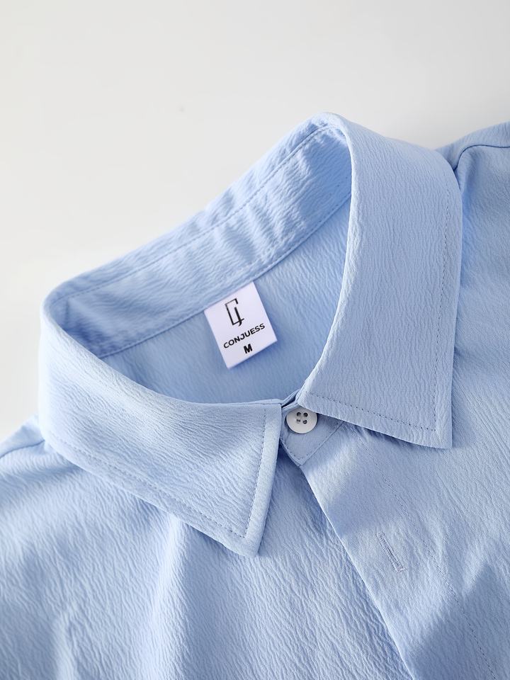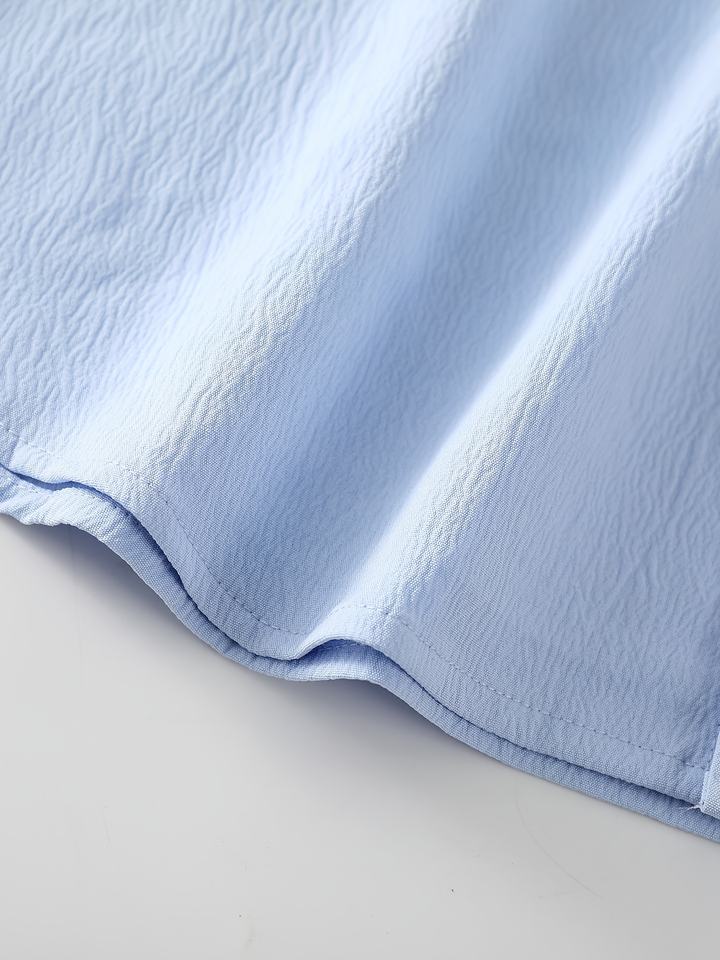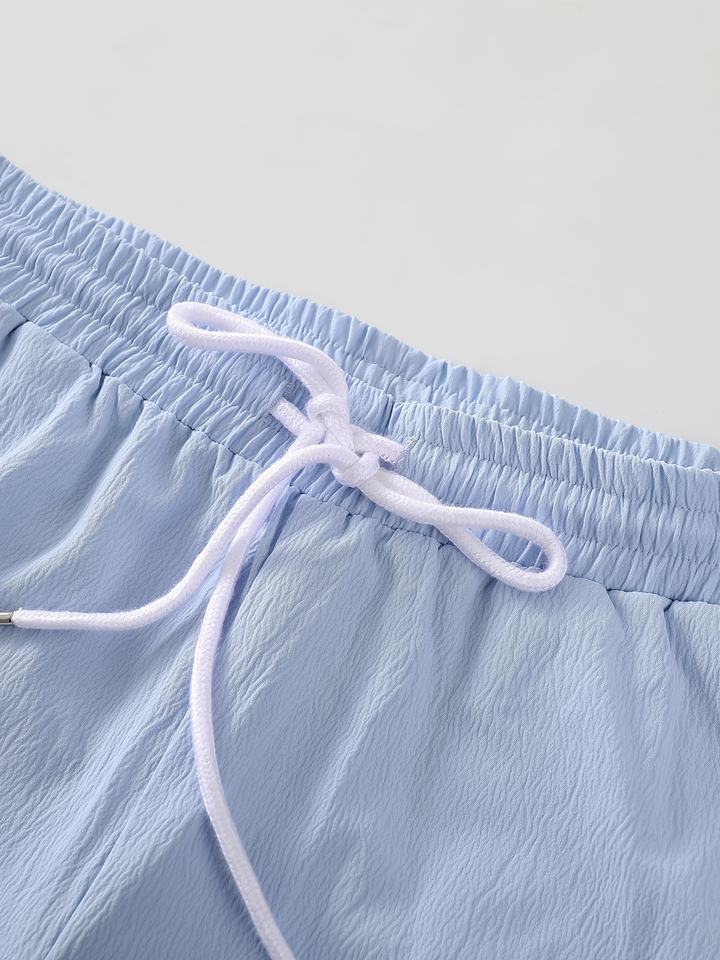 ชุดฤดูร้อนสีน้ำเงินพร้อมกางเกงขาสั้นสีขาวสำหรับผู้ชายชุดเดินชายหาดแบบลำลองที่กำลังมาแรง2025ดีไซน์เรียบง่าย