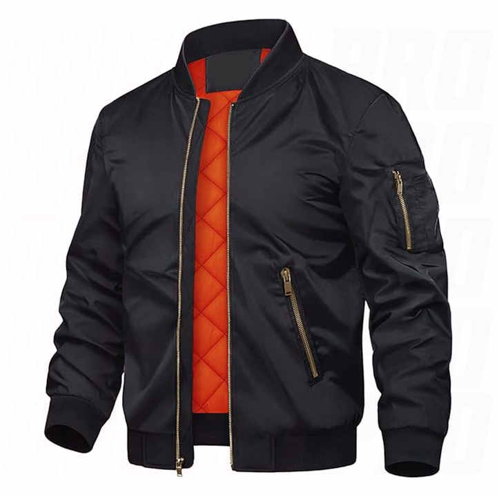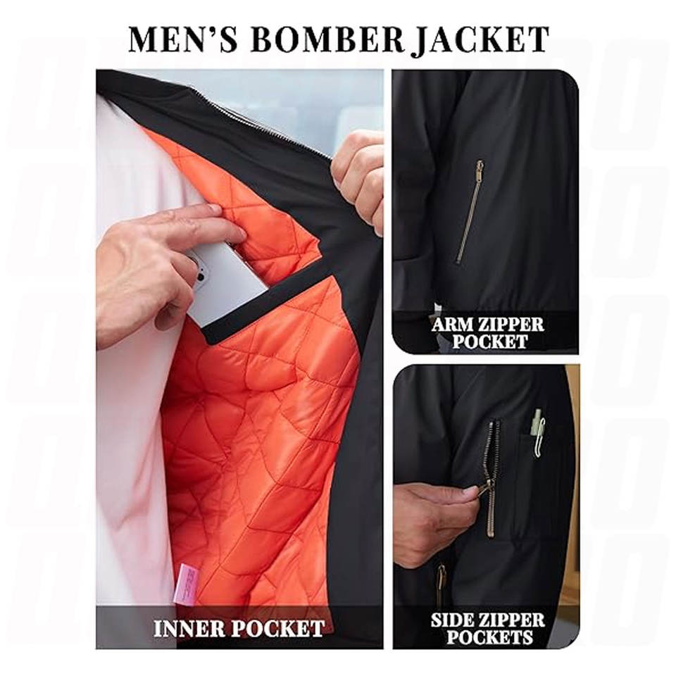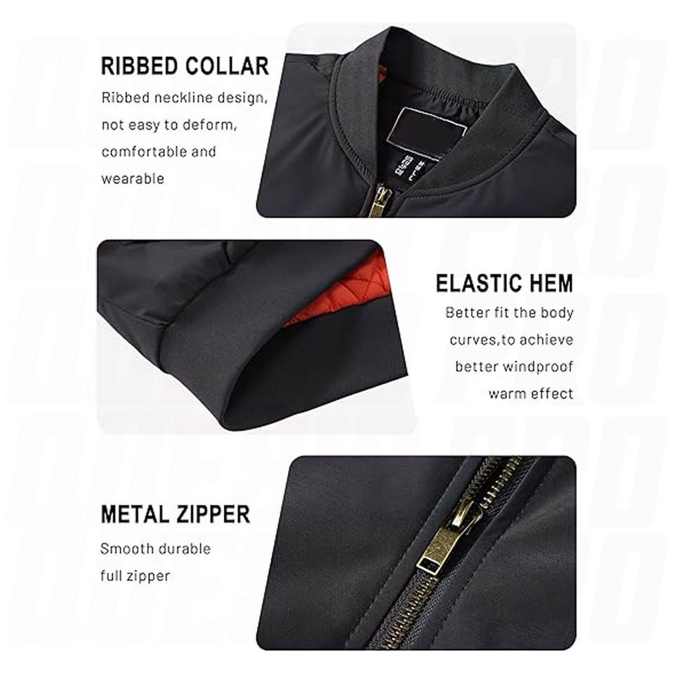 เสื้อแจ็คเก็ตบอมเบอร์ผู้ชายสำหรับฤดูใบไม้ร่วงและฤดูหนาว กันลม อุ่นสบาย มีซิปเต็มตัว บุนวมอย่างดี ใส่สบายในชีวิตประจำวันและมีสไตล์แบบคนเมือง