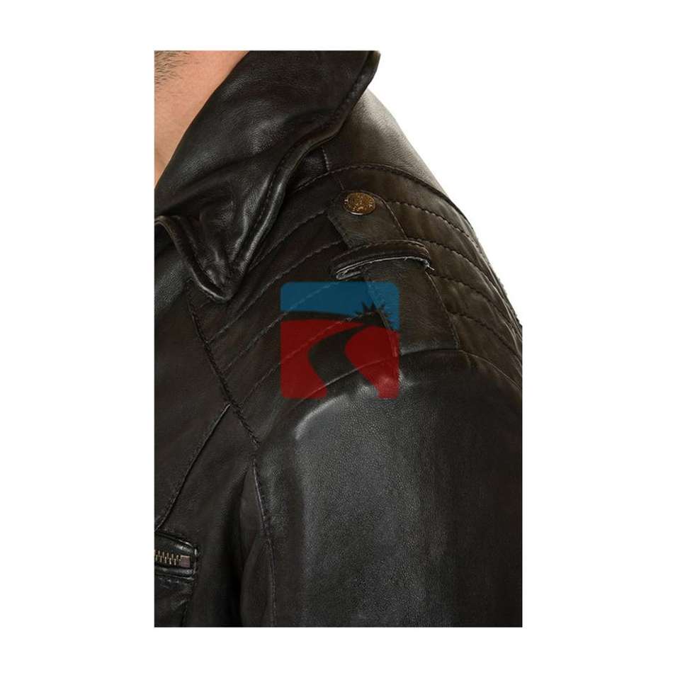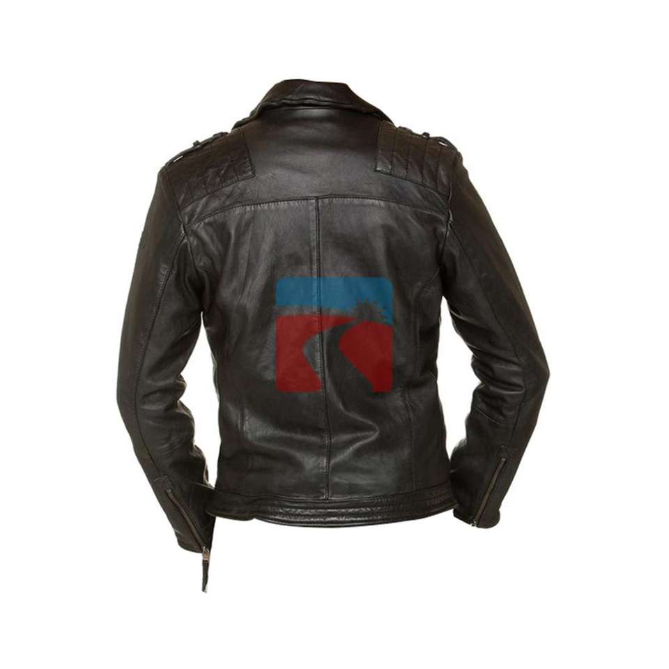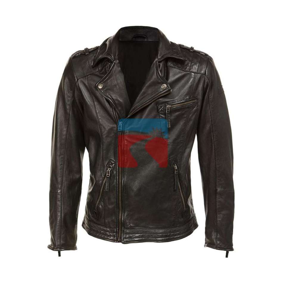 เสื้อแจ็กเก็ตหนังสำหรับผู้ชาย,แจ็กเก็ตหนังวัวดำ Perfecto สำหรับขี่มอเตอร์ไซค์ Marlon Biker (แจ็กเก็ต Oktoberfest แฟชั่น)