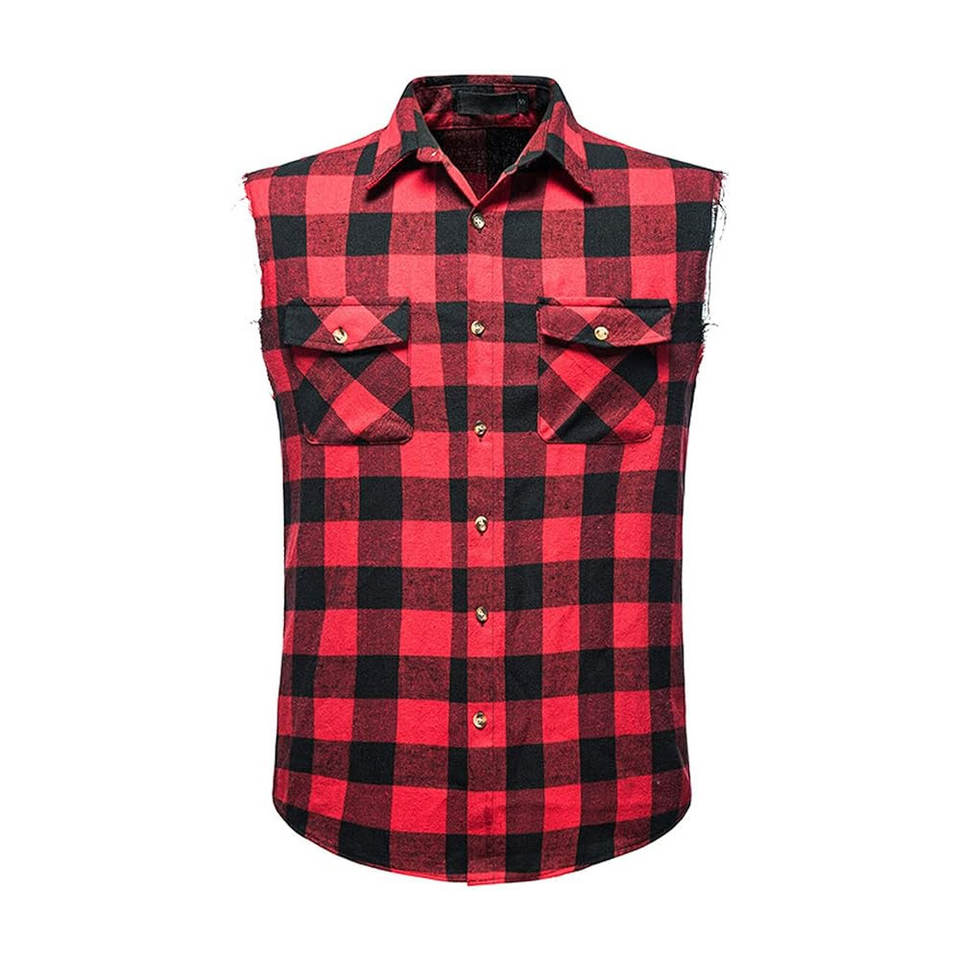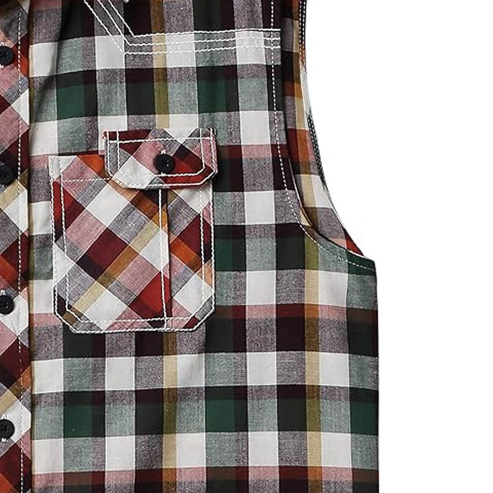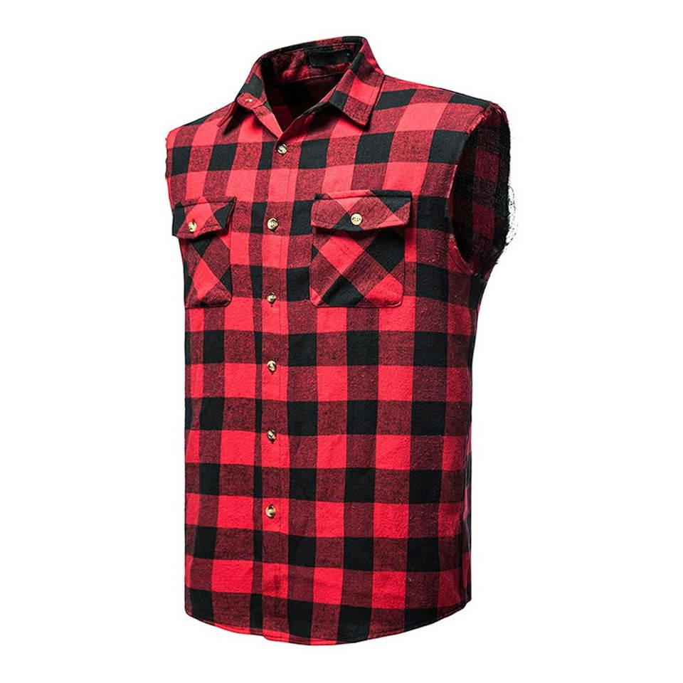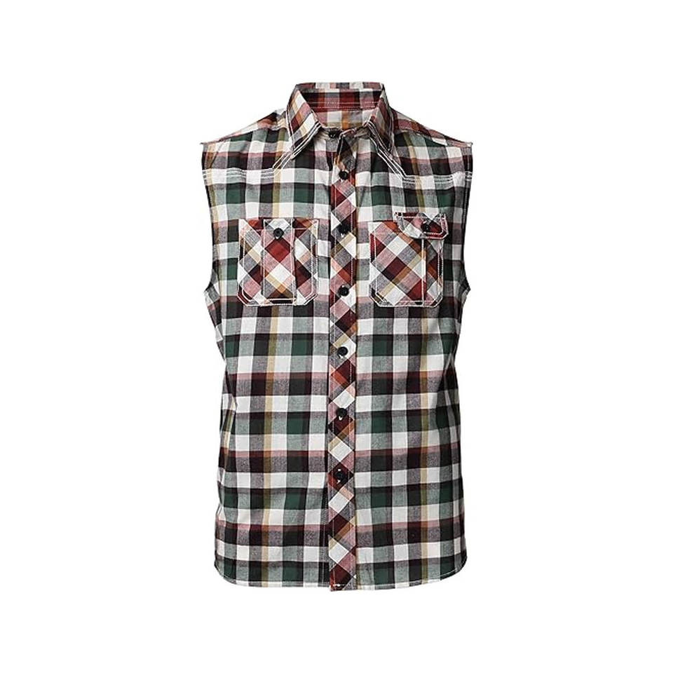 เสื้อเชิ้ตแขนกุดลายสก็อตผ้าแฟลนเนลสำหรับผู้ชาย เสื้อเชิ้ตติดกระดุม เสื้อเชิ้ตแขนกุดสำหรับออกกำลังกาย