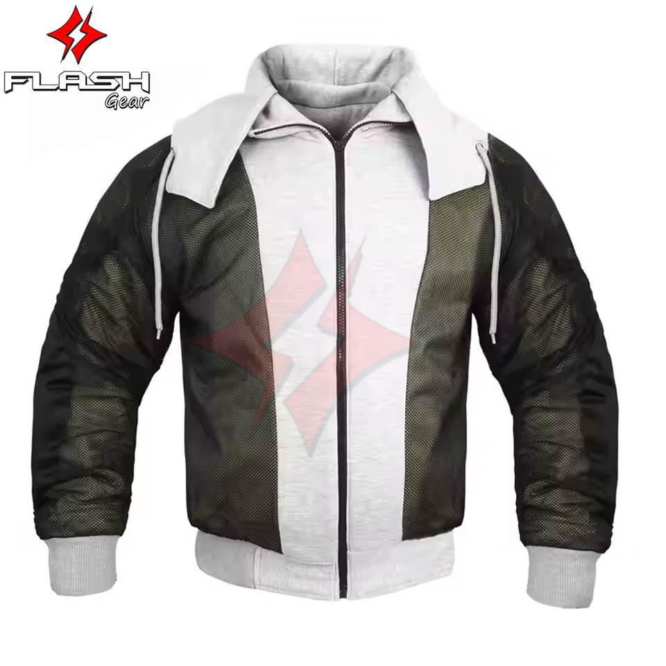 แจ็กเก็ตมีฮู้ดสำหรับผู้ชายได้รับการรับรอง CE เสื้อแจ็คเก็ตมีฮู้ดสำหรับขี่มอเตอร์ไซค์ผ้าโพลีเอสเตอร์ซับในเต็มรูปแบบระบายอากาศได้ดีทนทานต่อการป้องกันที่เหนือกว่า