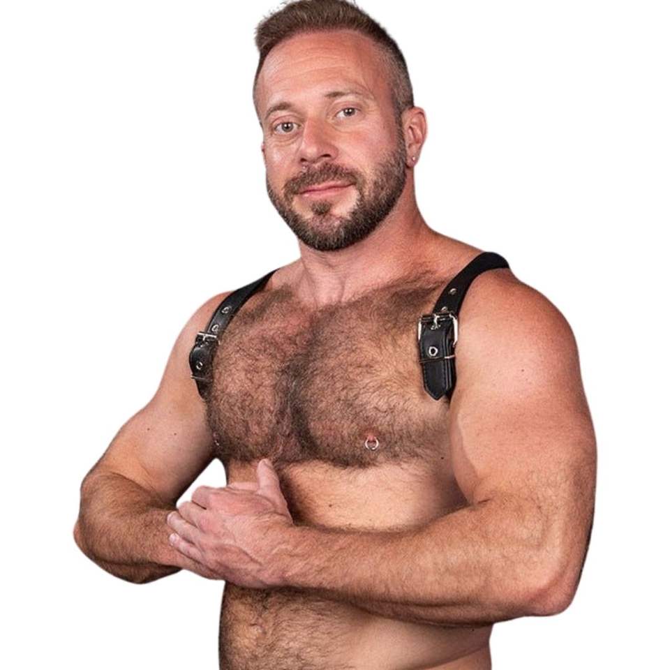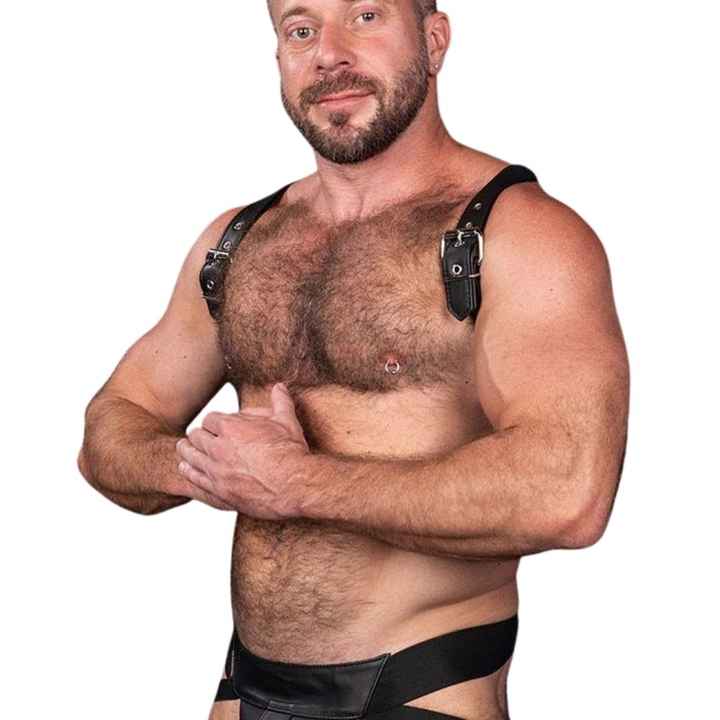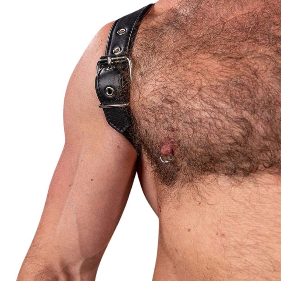 สายรัดไหล่ขนเฟอร์เทียมสำหรับผู้ชาย สีดำ ดีไซน์มินิมอล พรีเมียม เซ็กซี่ แต่งลูกไม้ สำหรับใส่ไปคลับ