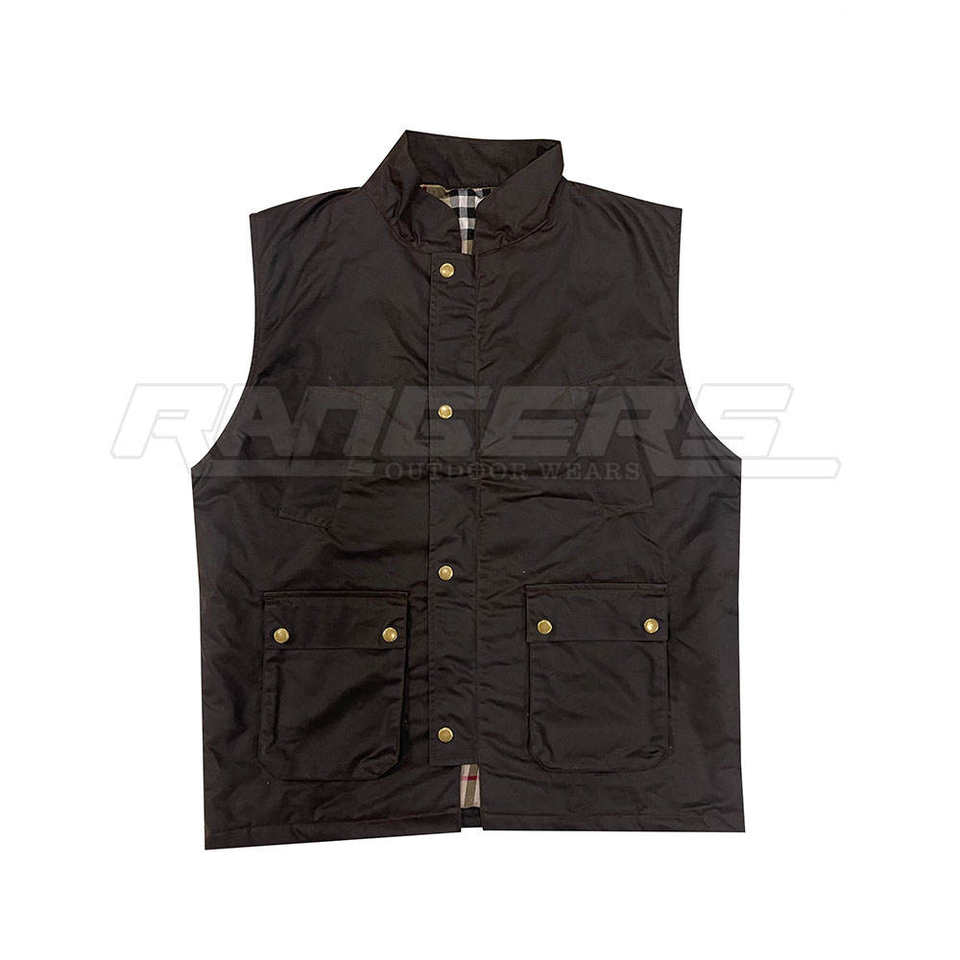 เสื้อกั๊กผ้าแคนวาสผู้ชาย สีน้ำตาลช็อกโกแลต น้ำหนักเบา ทนทาน เสื้อกั๊กอเนกประสงค์สำหรับกิจกรรมกลางแจ้ง ดีไซน์แข็งแรงทนทาน รับออกแบบตามสั่ง ขายส่งเสื้อกั๊กทำงาน