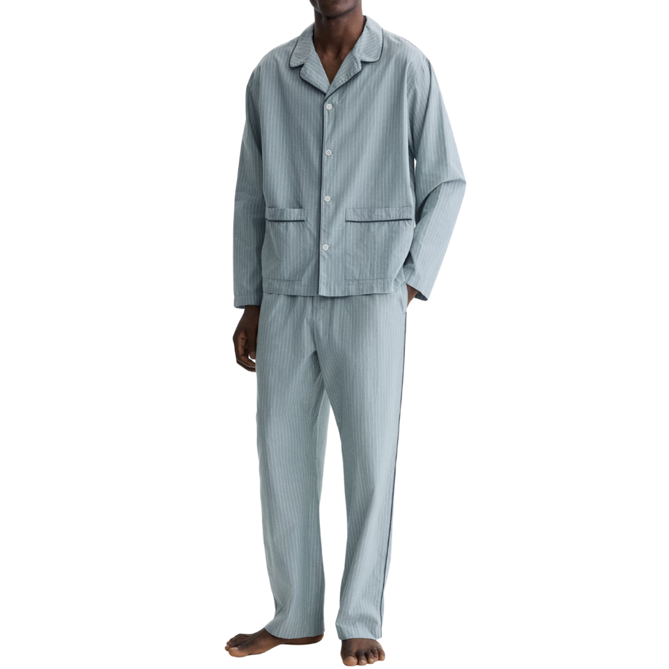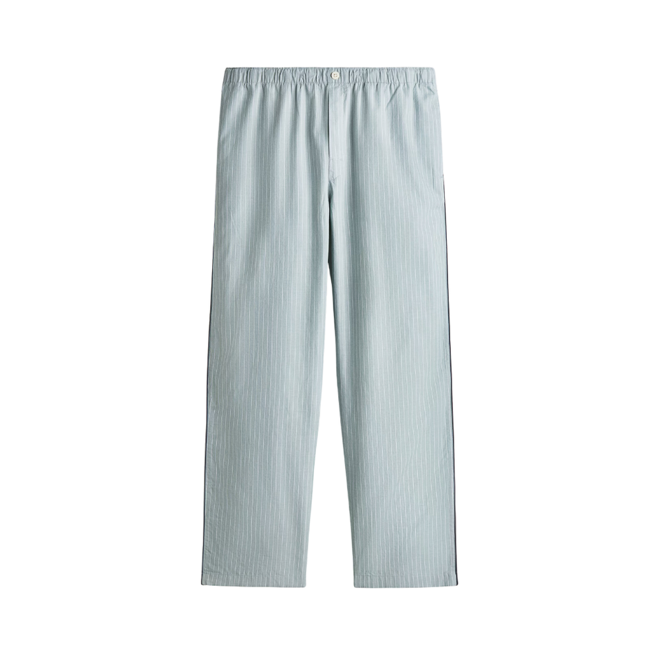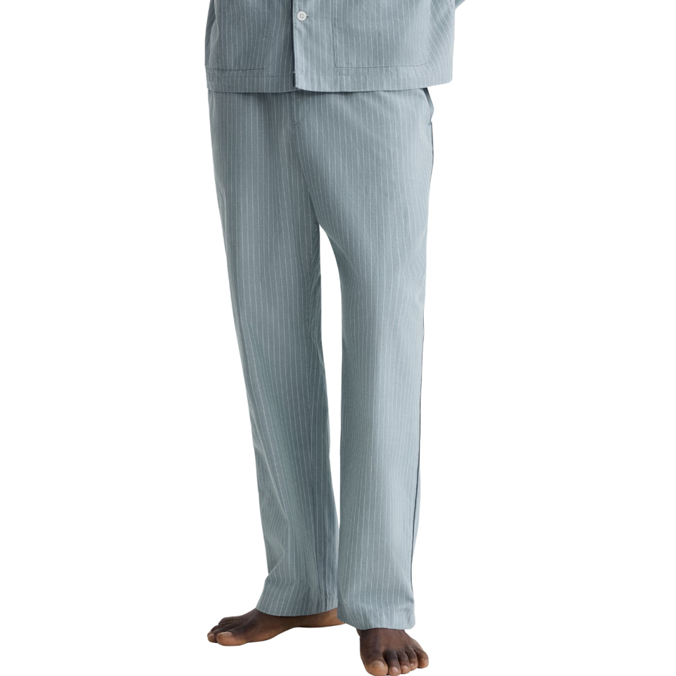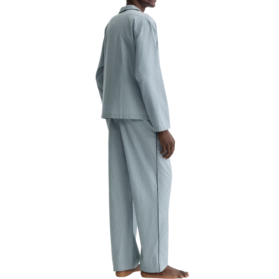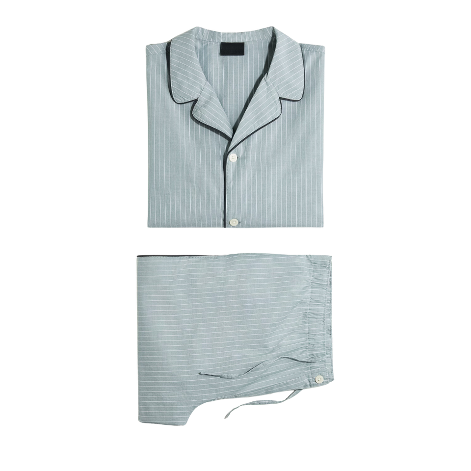 ชุดลำลองผู้ชาย ลายทาง แขนยาว สกรีนโลโก้ได้ ผ้าฝ้าย 100% หนา 160 GSM แห้งเร็ว ซักเครื่องได้ ชุดนอนแบบสวมใส่สบาย