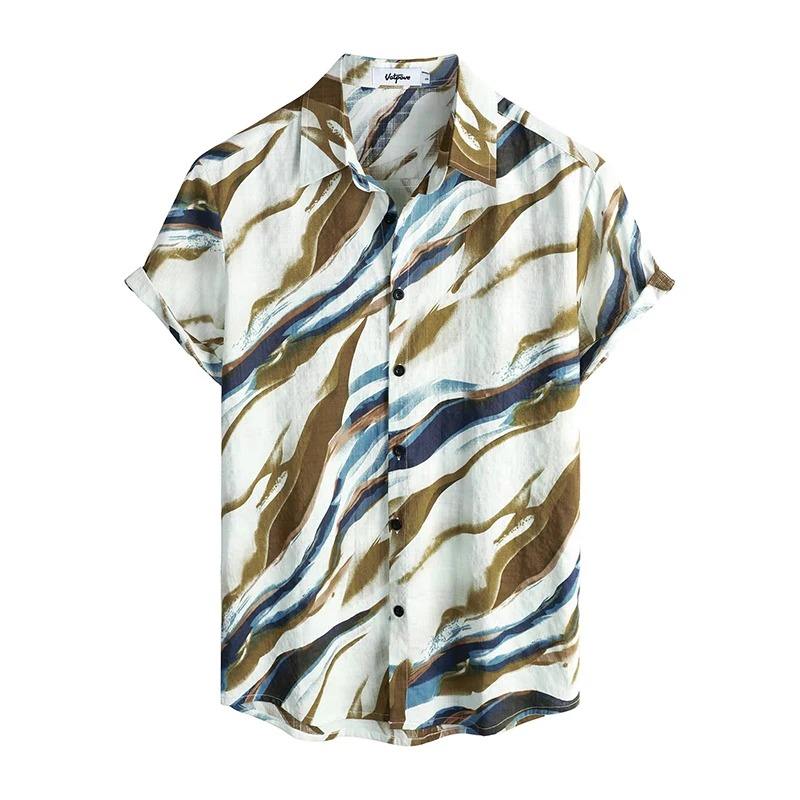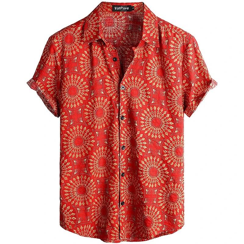 เสื้อฮาวายพิมพ์ลายดอกไม้สำหรับผู้ชาย, เสื้อ3D ชายหาดเขตร้อนติดกระดุมแขนสั้นเสื้อสำหรับผู้ชาย