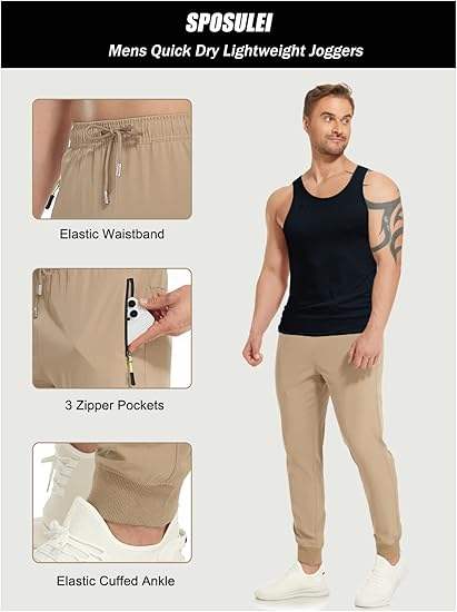 กางเกงจ็อกเกอร์ลำลองสำหรับผู้ชาย น้ำหนักเบา เหมาะสำหรับเดินป่า ออกกำลังกาย วิ่ง หรือใส่ในยิม แห้งเร็ว มีกระเป๋าซิป ใส่ได้ทุกฤดู
