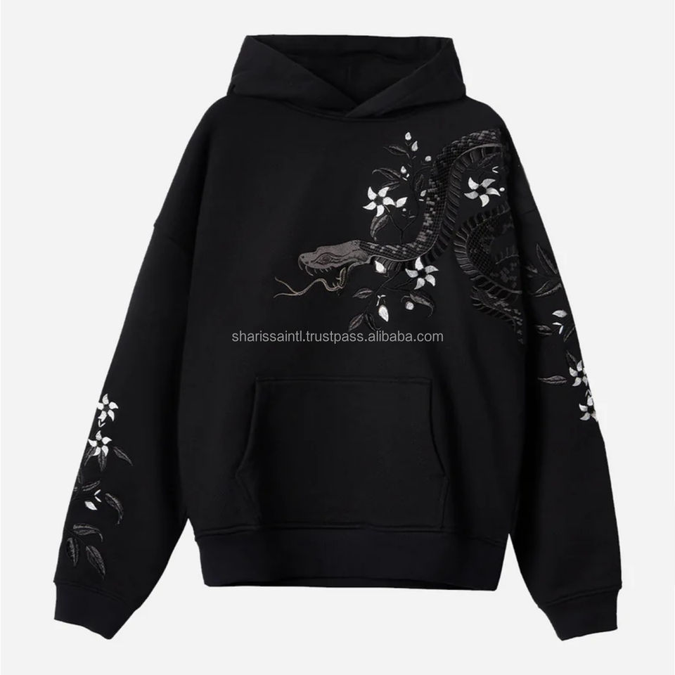 เสื้อฮู้ดปักลายมีฮู้ดแนวสตรีทลำลองสำหรับผู้ชายเสื้อสเวตเตอร์ผ้ากำมะหยี่แบบสวมหัวมีฮู้ดสำหรับทุกเพศ