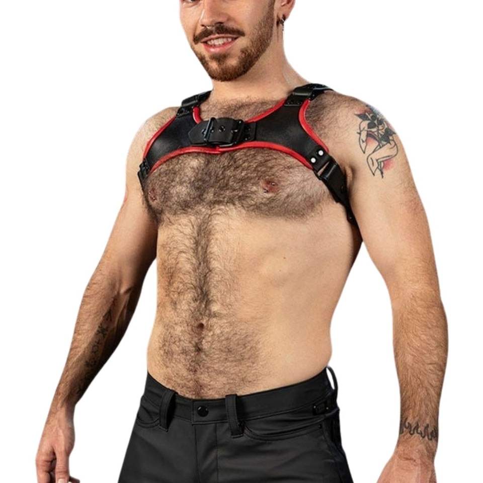 ชุดรัดอกหนังเทียม Mens Centurion 2.0 สีแดง สายปรับได้ ไซส์ใหญ่ ระบายอากาศดี เหมาะสำหรับใส่ไปเที่ยวคลับ