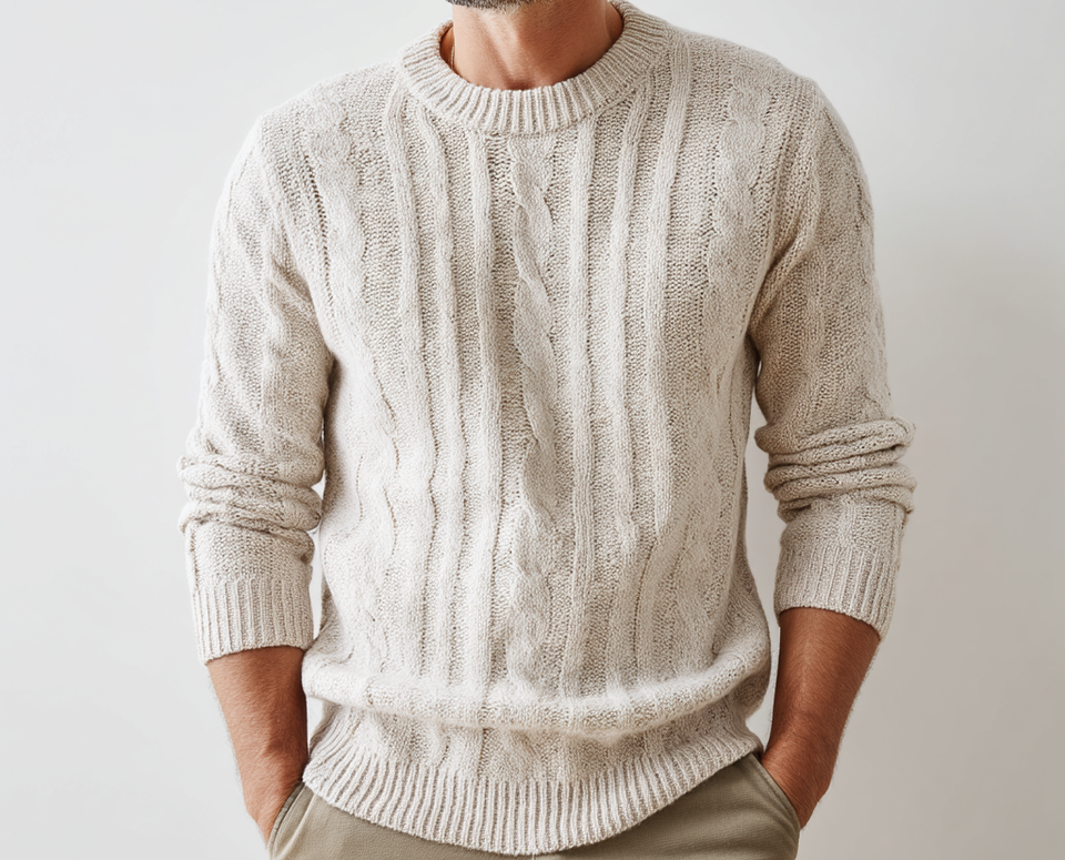 Mens Classic Chunky Wool Acrylic Blend Cable Knit Sweater Anti-Shrink Breathable Eco-Friendly Front Logo Warm Stylish
