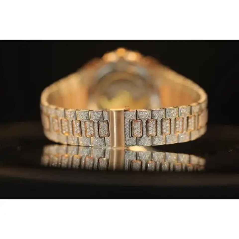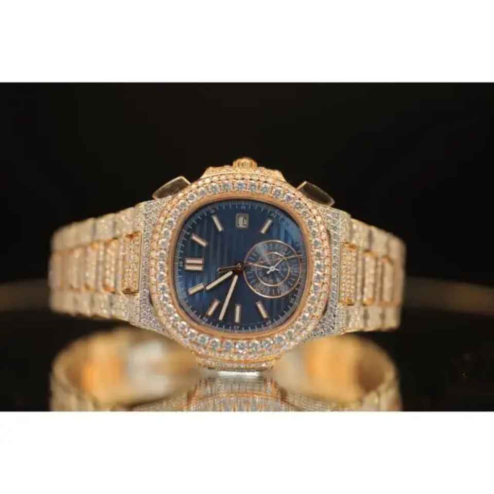 นาฬิกาผู้ชายสุดหรู ดีไซน์คลาสสิก ประดับเพชรโมอิสซาไนต์เต็มหน้าปัด ระบบจักรกล สายยาง ดีไซน์ประดับหมุด พร้อมเครื่องตรวจสอบ