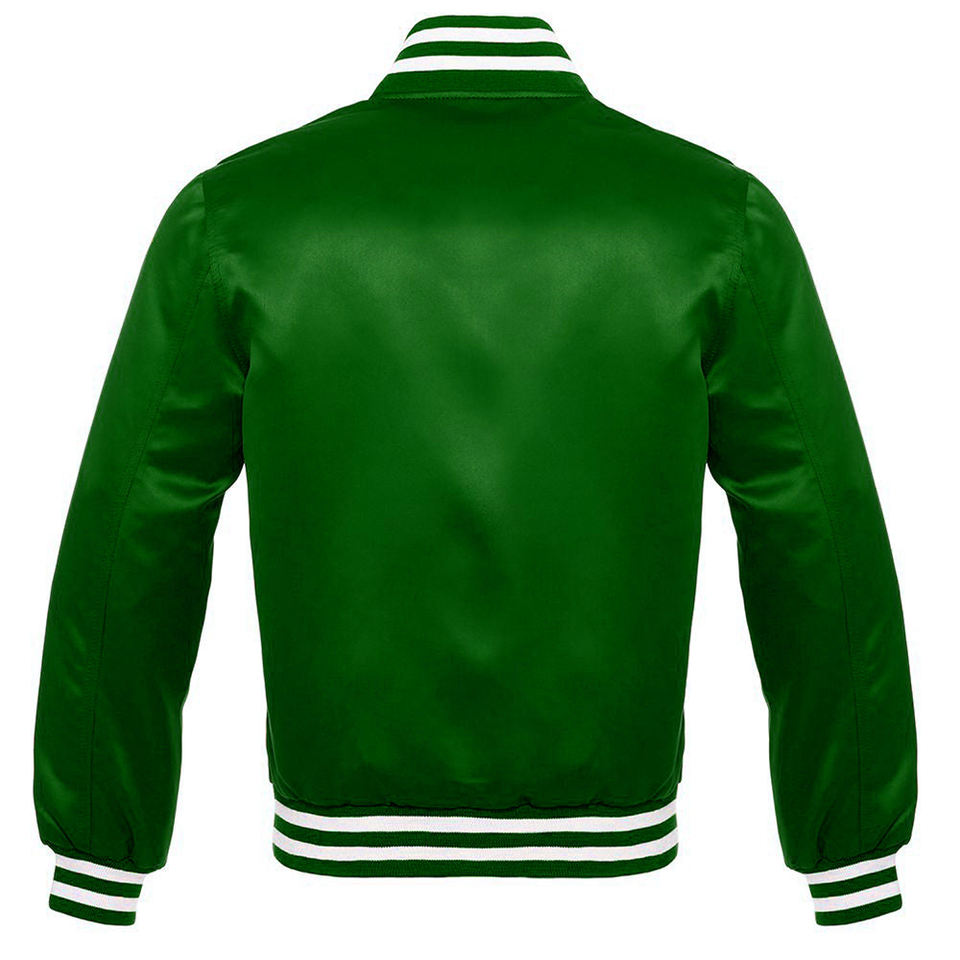เสื้อแจ็คเก็ตบอมเบอร์แบบคลาสสิกสำหรับผู้ชาย ผ้าซาติน สีเขียว น้ำเงิน ดำ คอลเลคชั่นลายทาง แต่งขอบยางยืด กระดุมแป๊ก สไตล์สปอร์ต ลายตัวอักษร