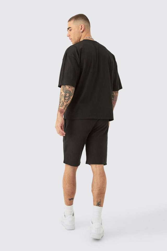 ชุดเสื้อผ้าบุรุษเสื้อยืดและกางเกงขาสั้นลายหัวใจขนาดใหญ่ชุดออกกำลังกายระบายอากาศ