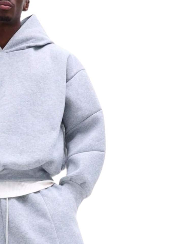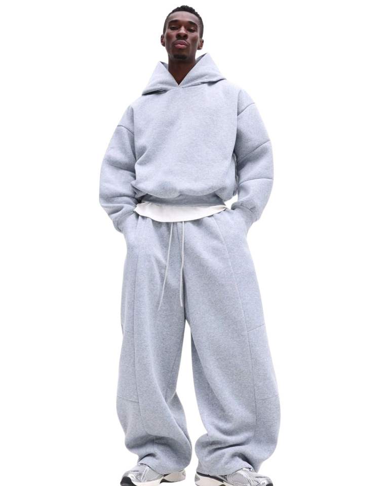ชุดเซ็ตเสื้อฮู้ดผ้าฟลีซสีเทาเมฆสำหรับผู้ชาย และกางเกงจ็อกเกอร์ทรงหลวม สไตล์ลำลองสำหรับฤดูหนาว เสื้อฮู้ดแบบสวมหัว กางเกงขายาว สตรีทแวร์
