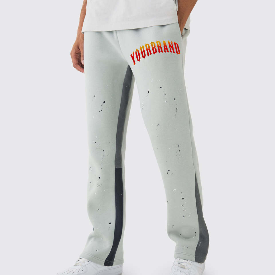 กางเกงวอร์มผู้ชายแบบสีบล็อก คุณภาพสูง กางเกงจ็อกเกอร์สั่งทำพิเศษ ผ้าฟลีซหนานุ่ม สีพื้น ทรงขาบานหลวม สไตล์ OEM