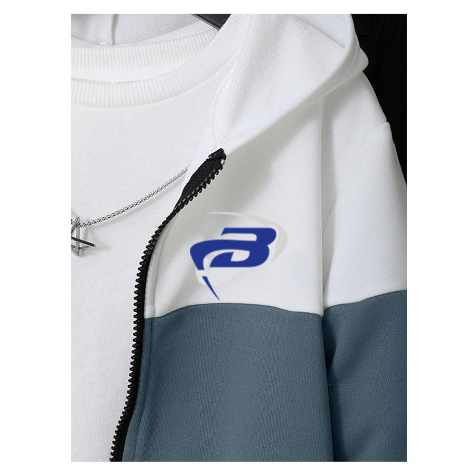 ชุดวอร์มผู้ชายสำหรับฤดูหนาว ระบายอากาศได้ดี สีสันตัดกัน ชุดฮู้ดซิปและกางเกงจ็อกเกอร์ลายอนิเมะ ชุดลำลองสำหรับเล่นกีฬาและออกกำลังกาย