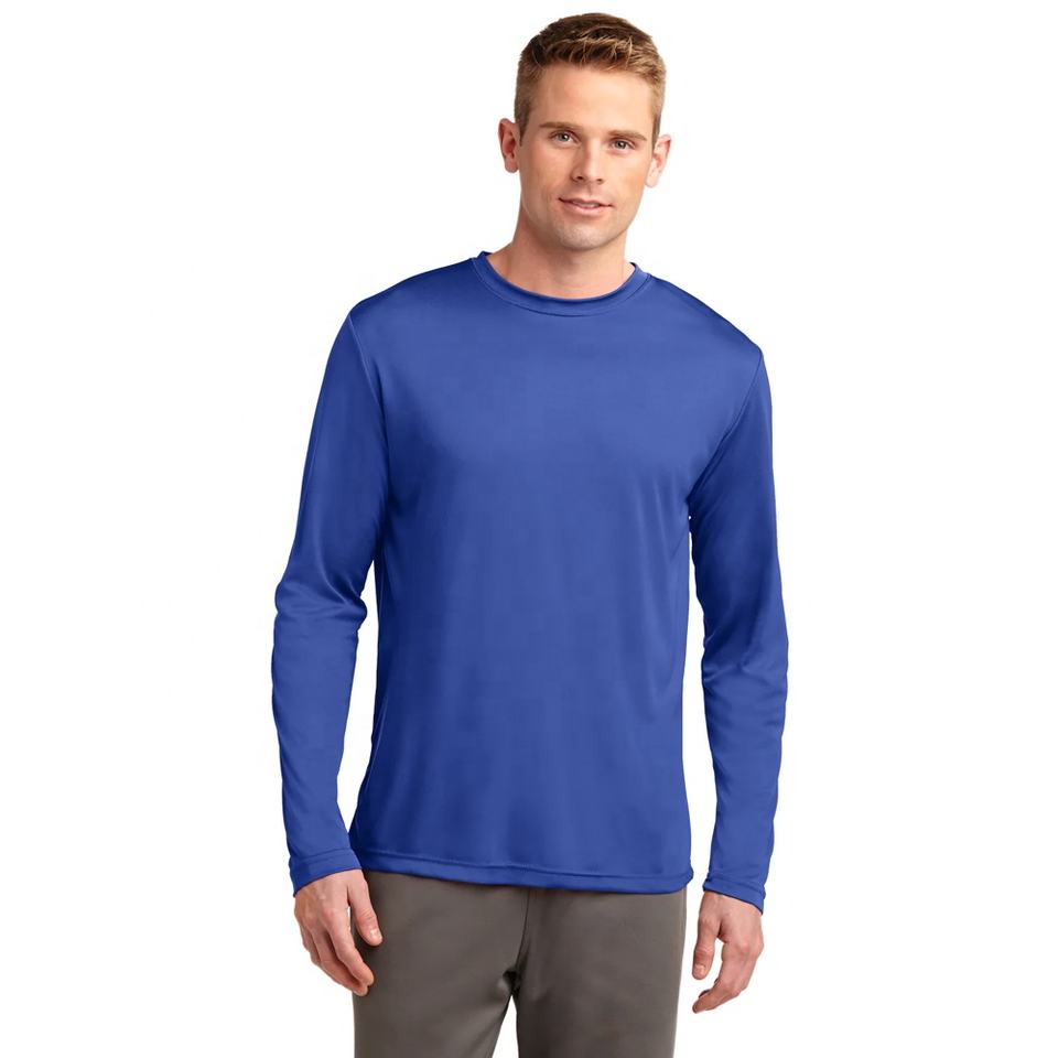 เสื้อยืดคอกลมแขนยาวซับเหงื่อสำหรับคู่แข่งชายสีฟ้าสด